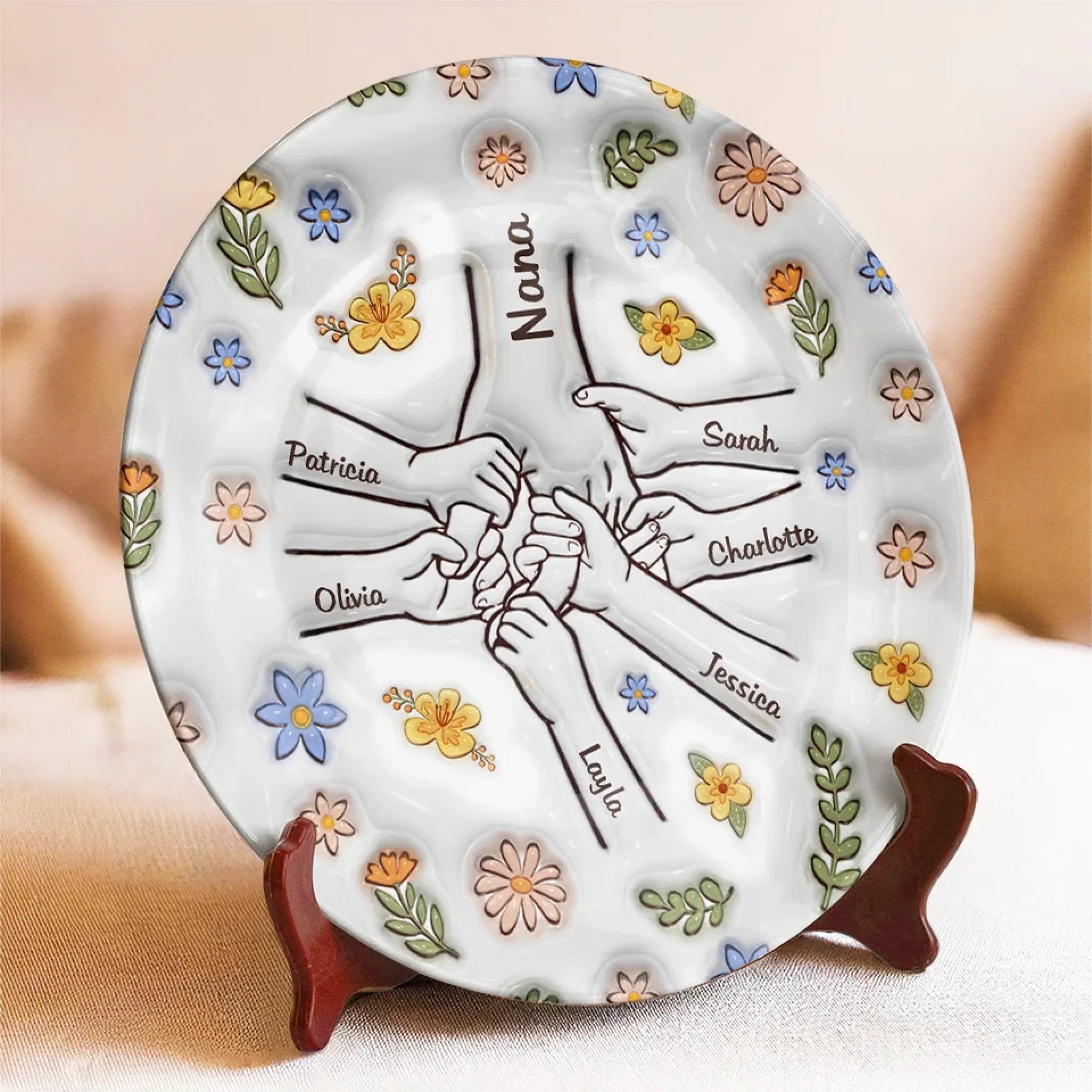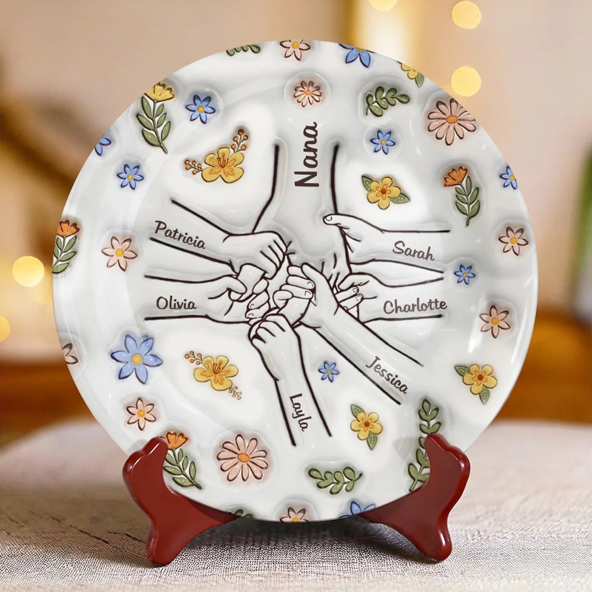 Love Grows Best In A Happy Family - Family Personalized Custom 3D Inflated Effect Printed Ceramic Plate - Mother's Day, Gift For Mom, Grandma