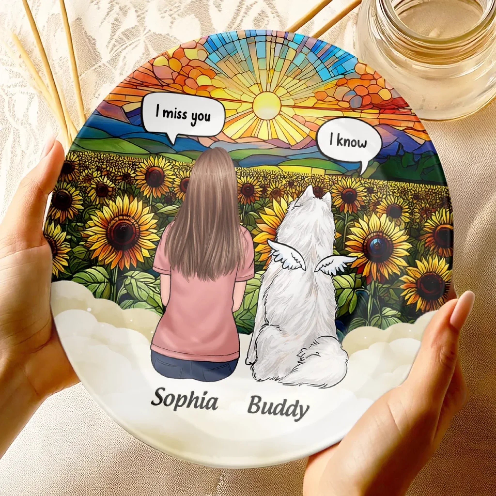 Love Never Fades, It Only Grows Stronger - Memorial Personalized Custom Ceramic Plate - Sympathy Gift For Pet Owners, Pet Lovers