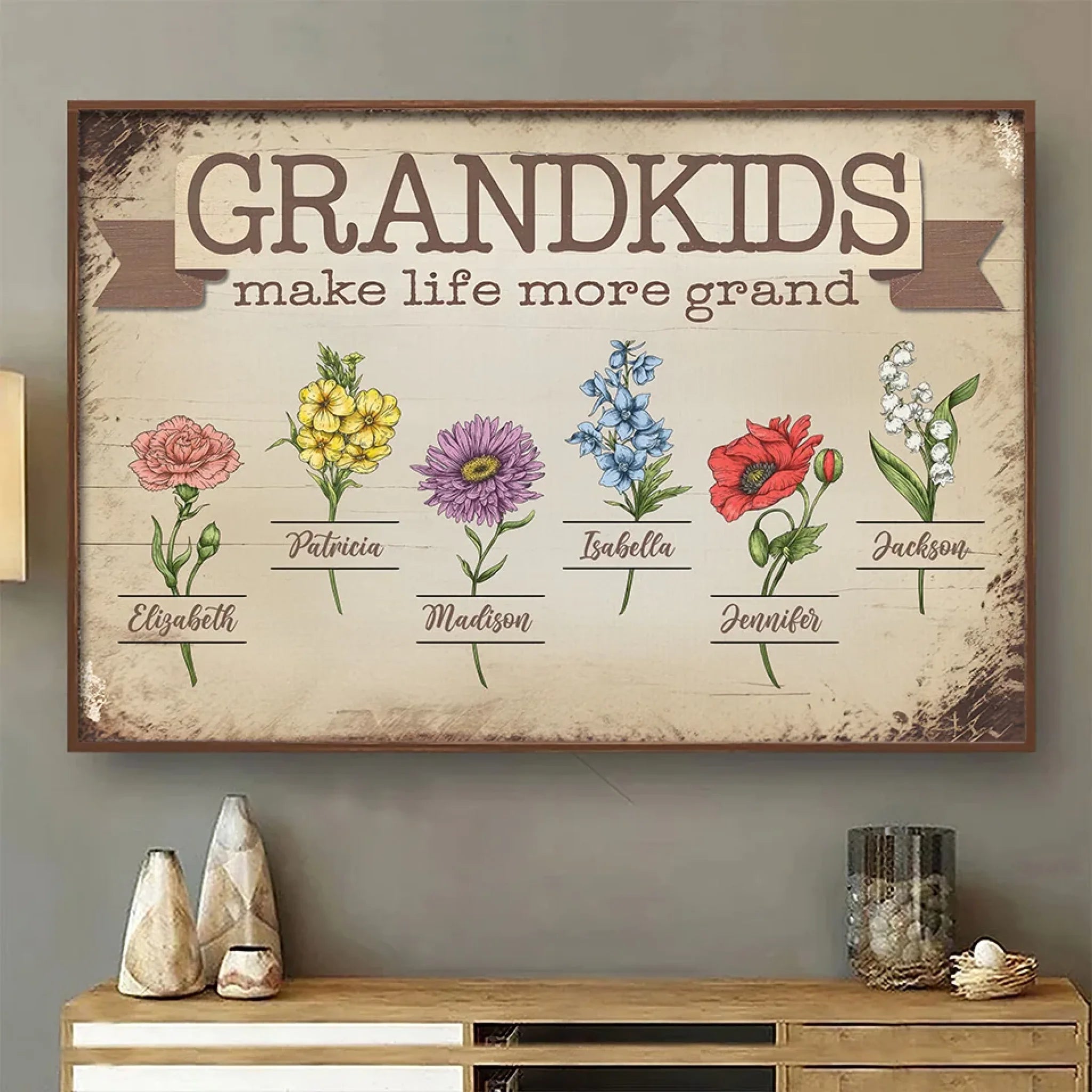 Made Grand By My Grandkids - Family Personalized Custom Horizontal Poster - Gift For Mom, Grandma