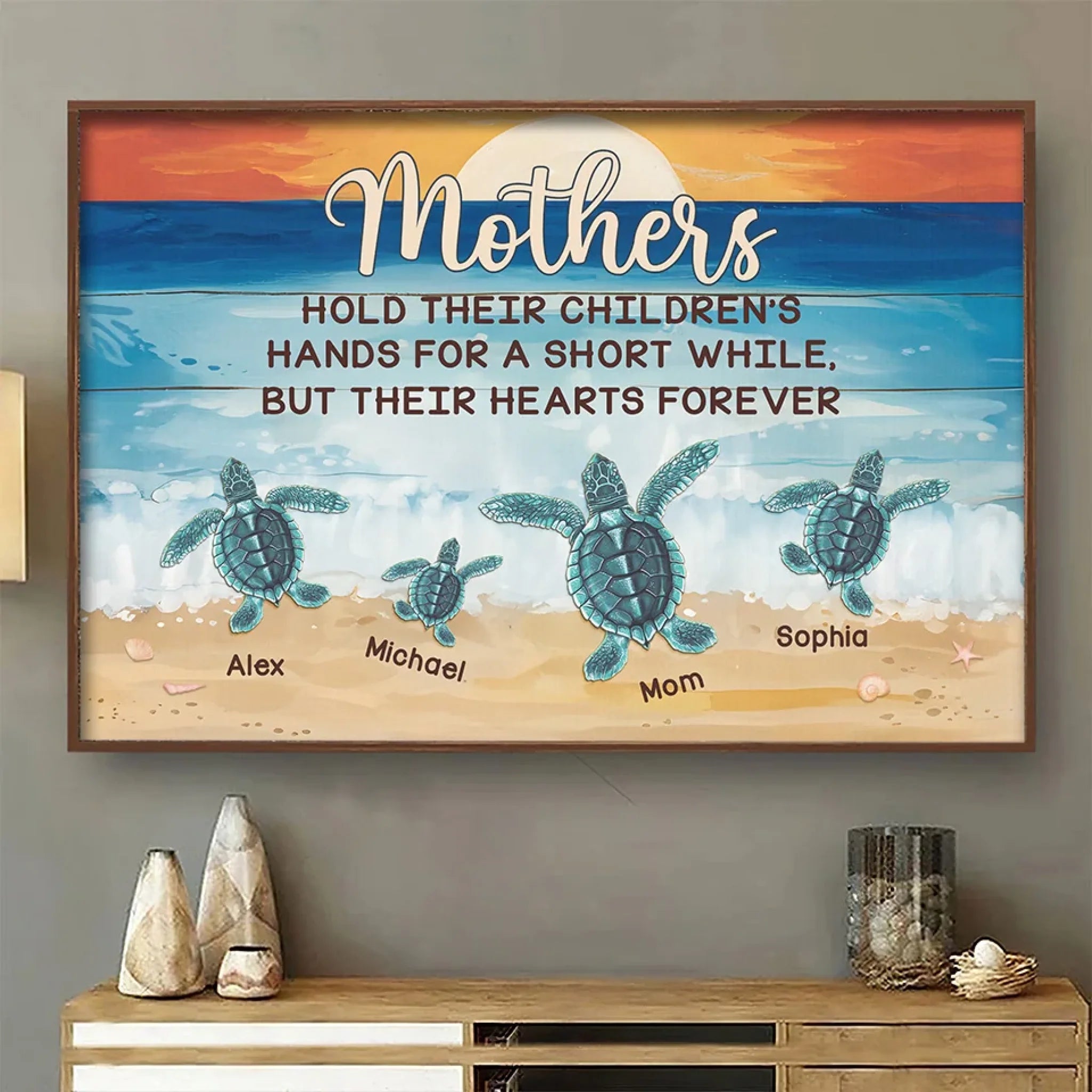 Mama Turtle And Her Hatchlings, Forever Traveling Together - Family Personalized Custom Horizontal Poster - Gift For Mom