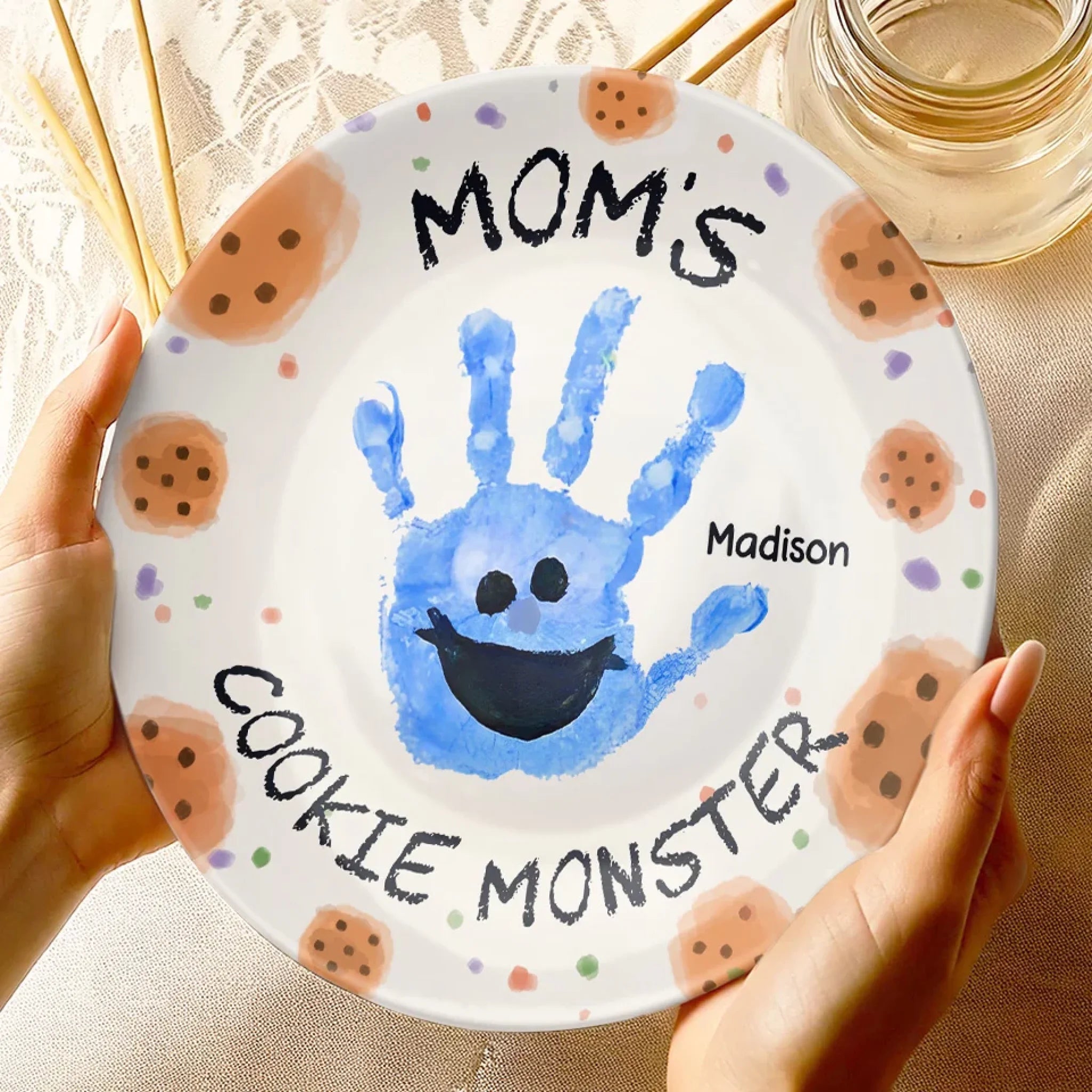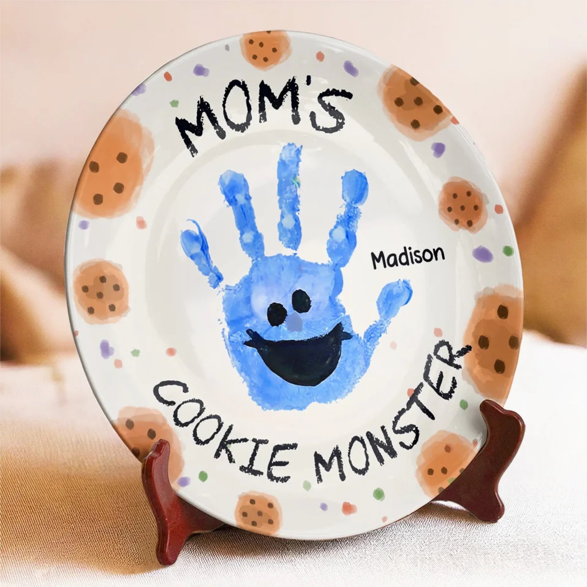 Mama's Cookie Monster - Family Personalized Custom Ceramic Plate - Mother's Day, Gift For Mom, Grandma