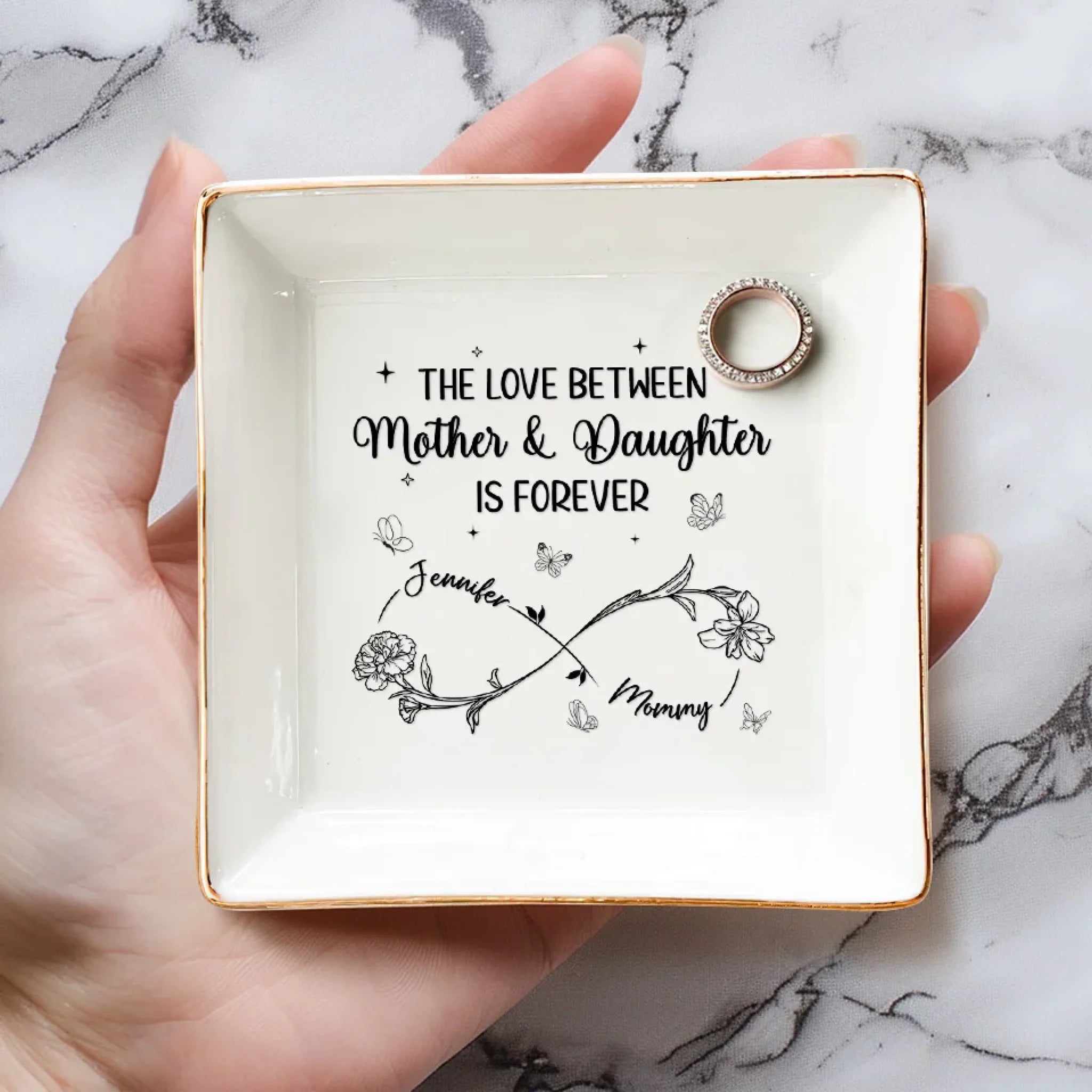 Mom’s Love, Daughter’s Strength - Family Personalized Custom Jewelry Dish - Mother's Day, Gift For Mom, Daughter