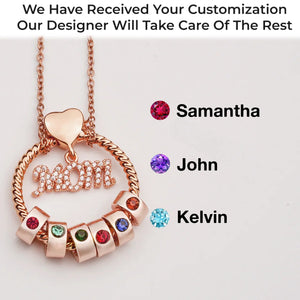 Mom’s Love, Forever Engraved - Family Personalized Custom Circle Pendant With Birthstone Beads Necklace - Mother's Day, Gift For Mom