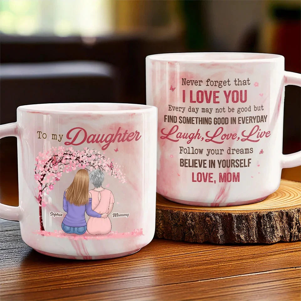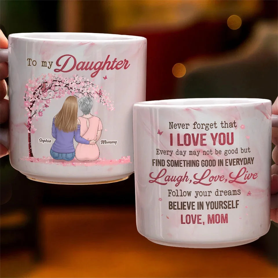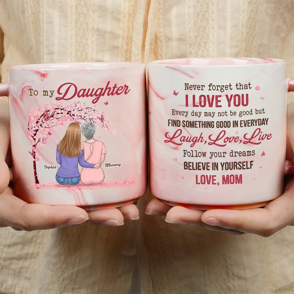 Never Forget That I Love You - Family Personalized Custom Marble Mug - Gift For Daughter, Granddaughter