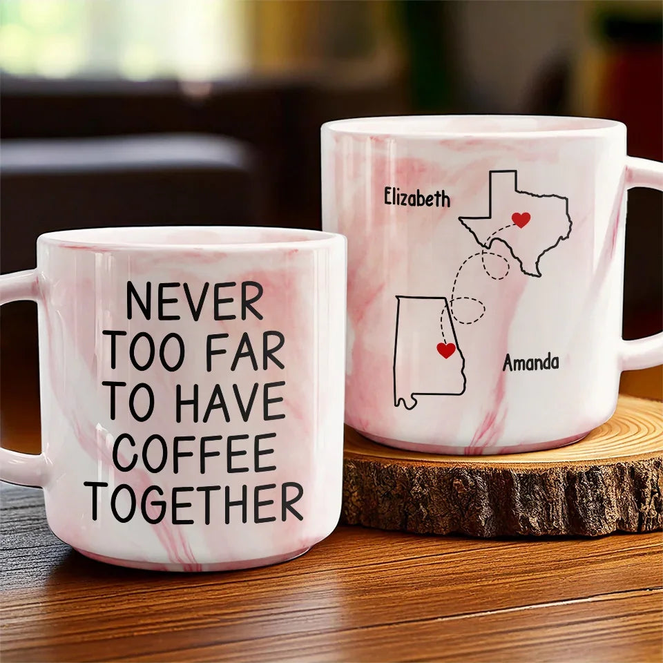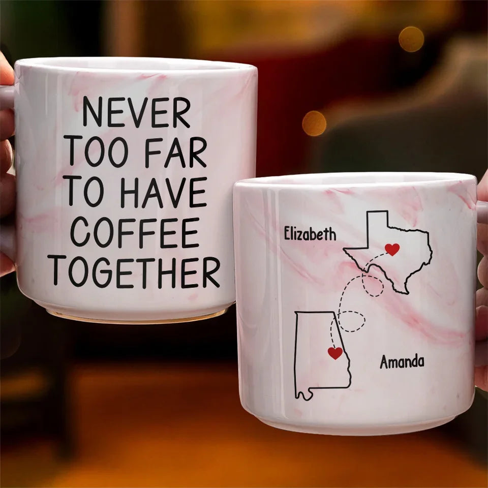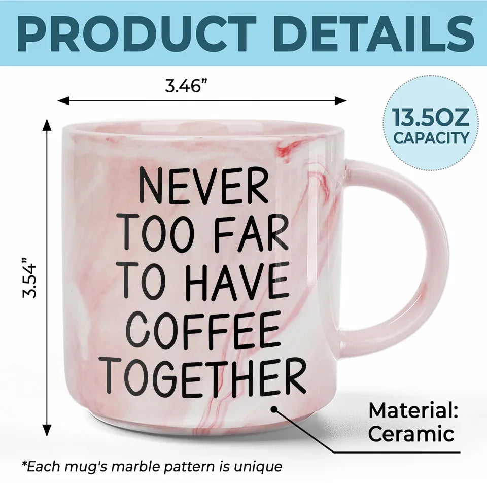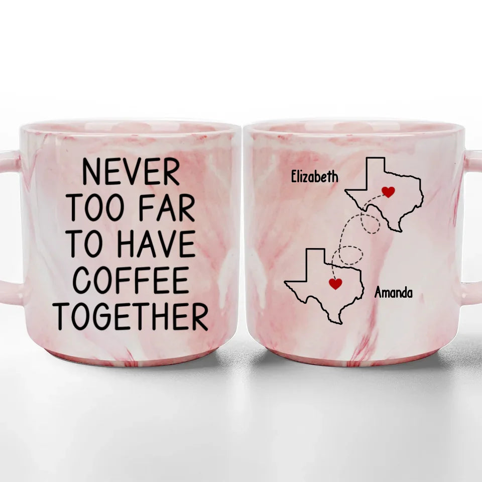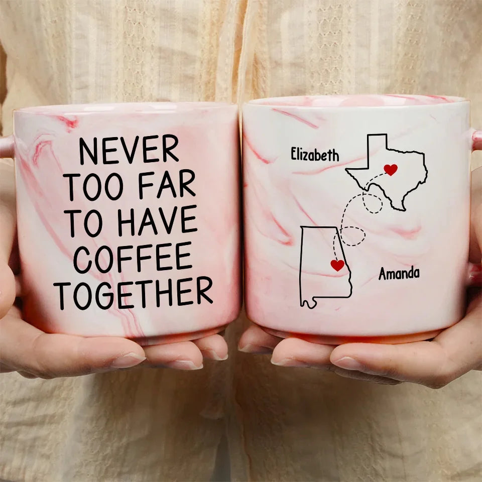 Never Too Far To Have Coffee Together - Bestie Personalized Custom Marble Mug - Gift For Best Friends, BFF, Sisters