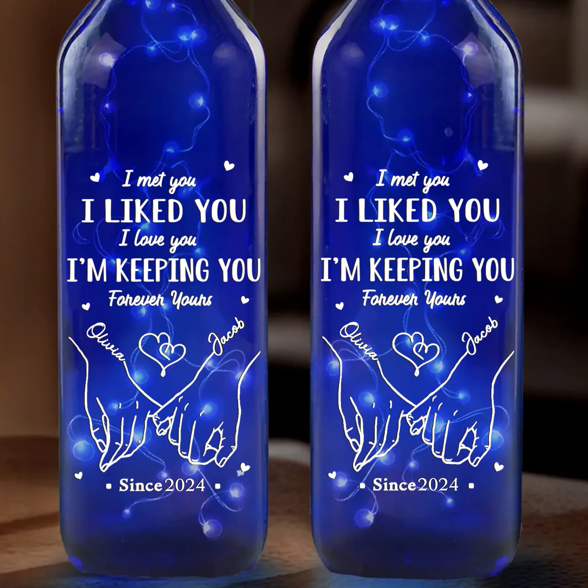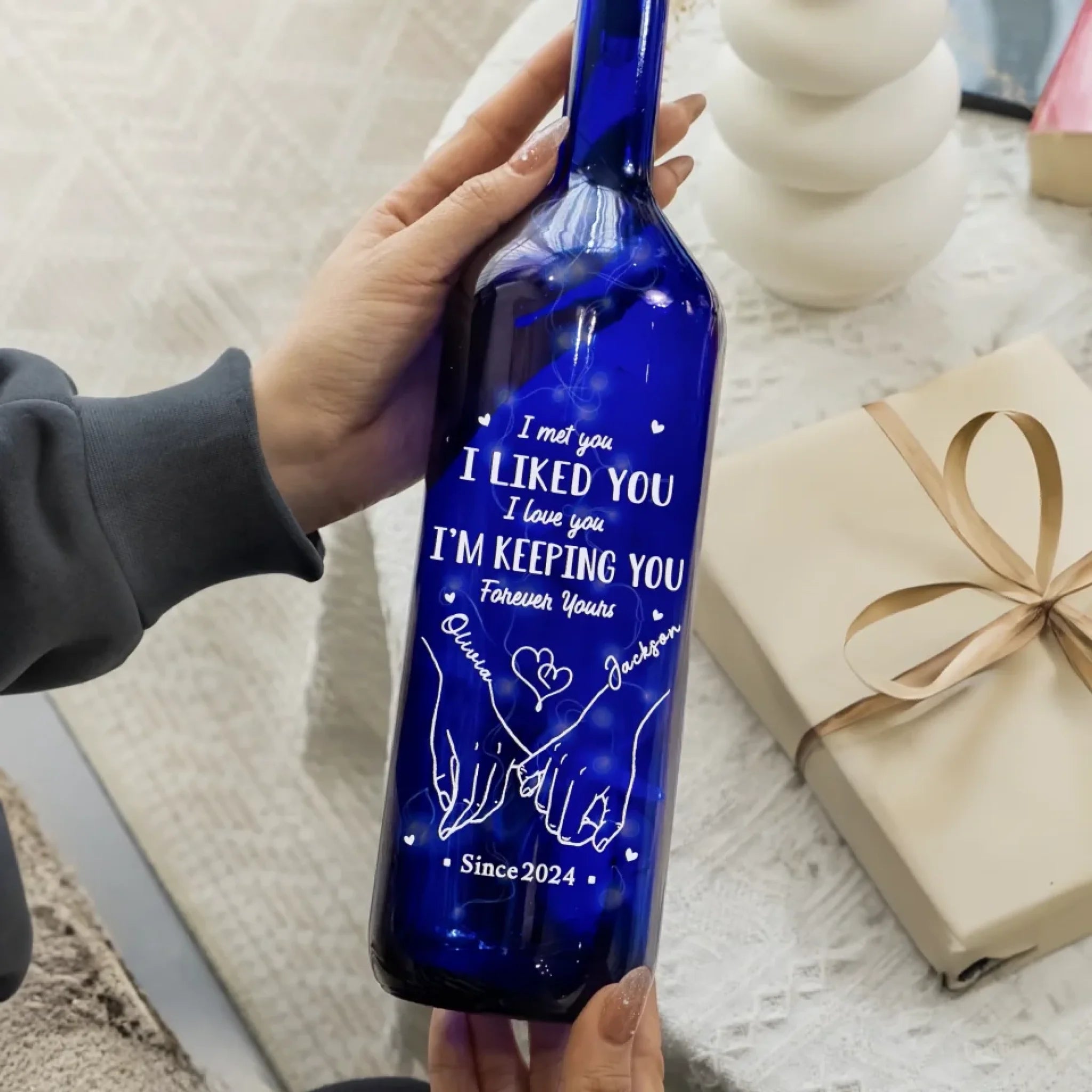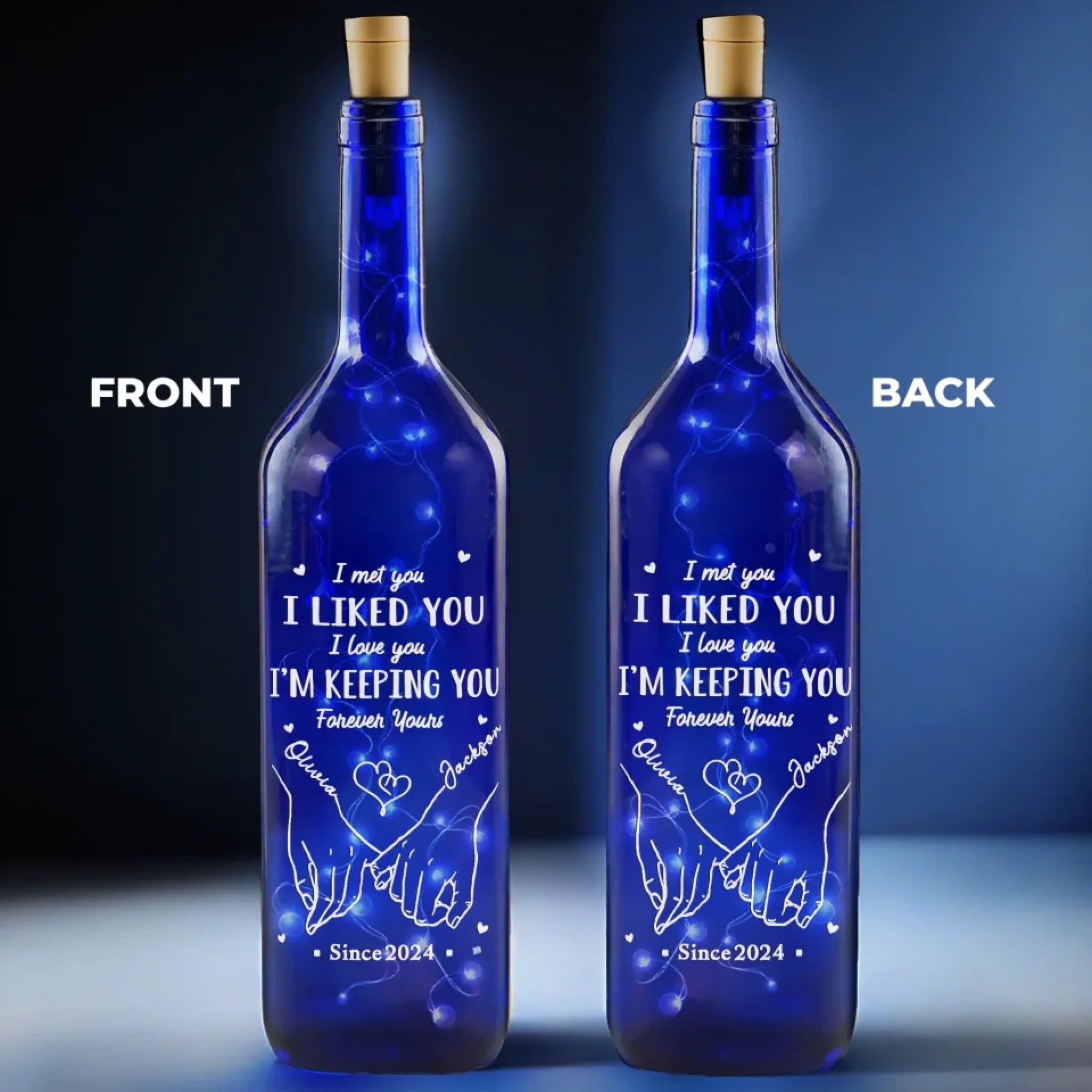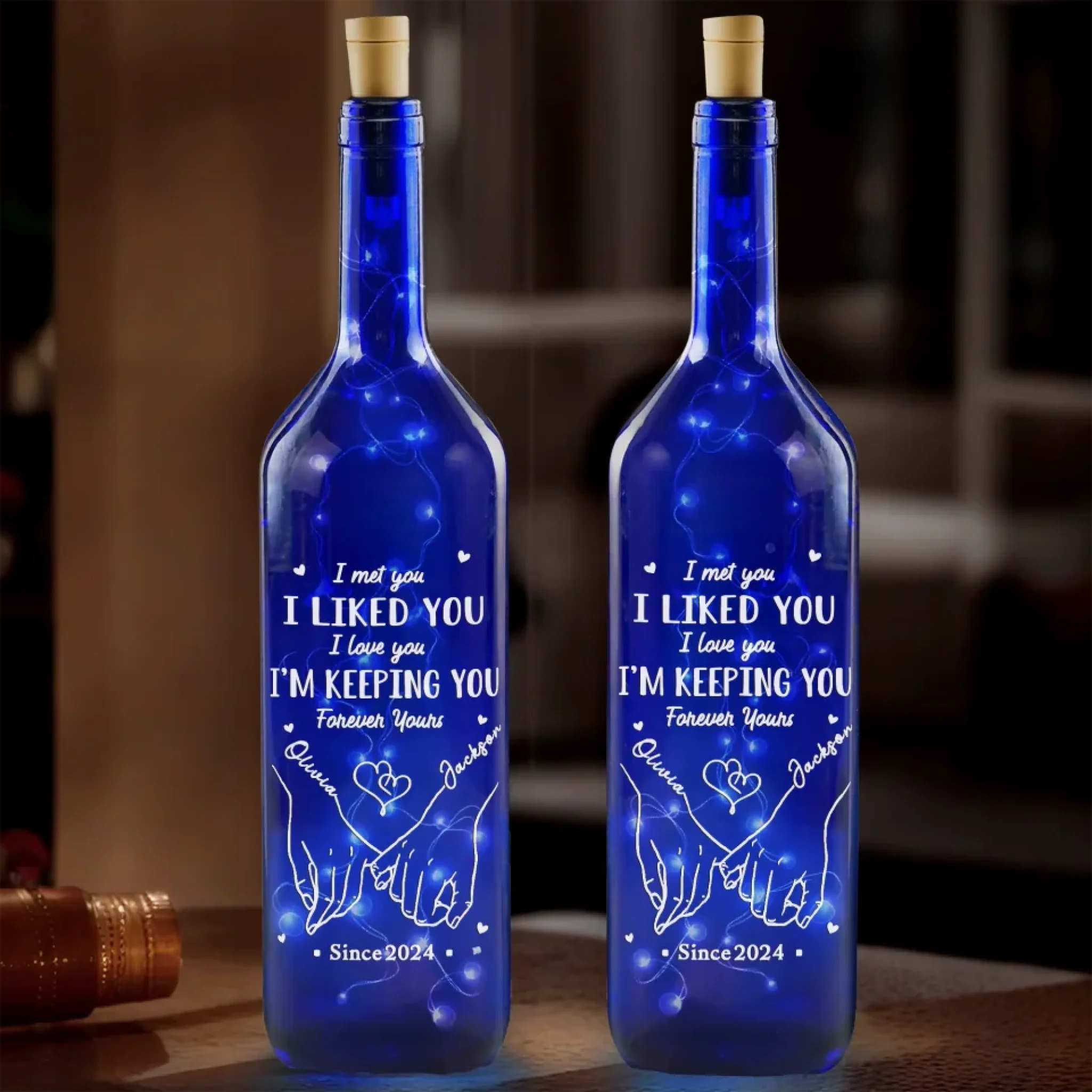 Our Love, Our Forever - Couple Personalized Custom Blue Bottle Lamp - Gift For Husband Wife, Anniversary