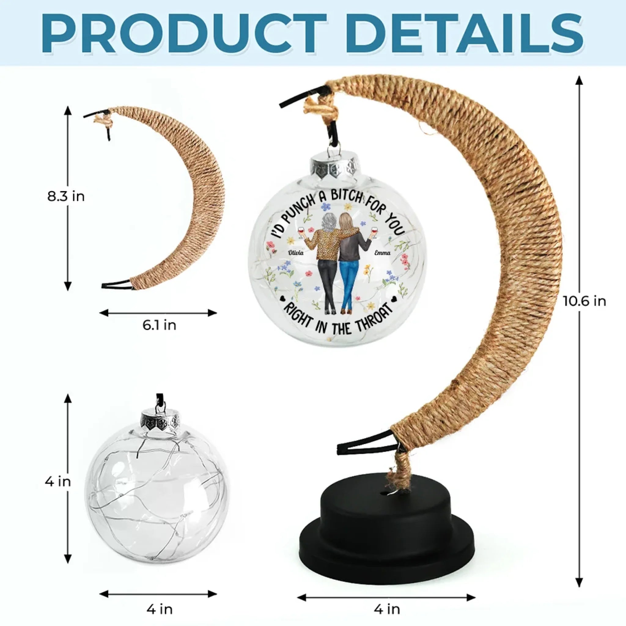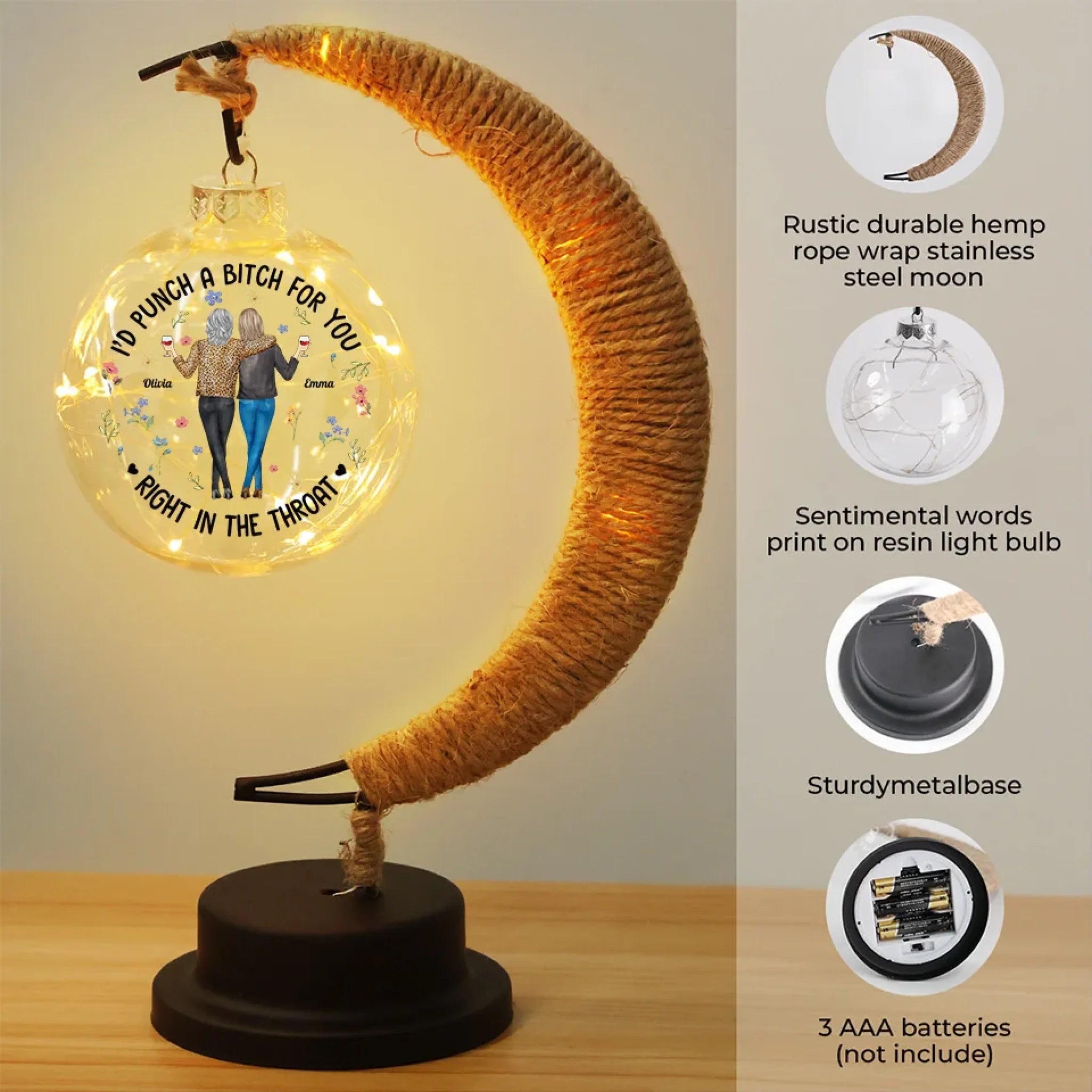 • Material: The lamp is made of stainless steel with a twine moon.