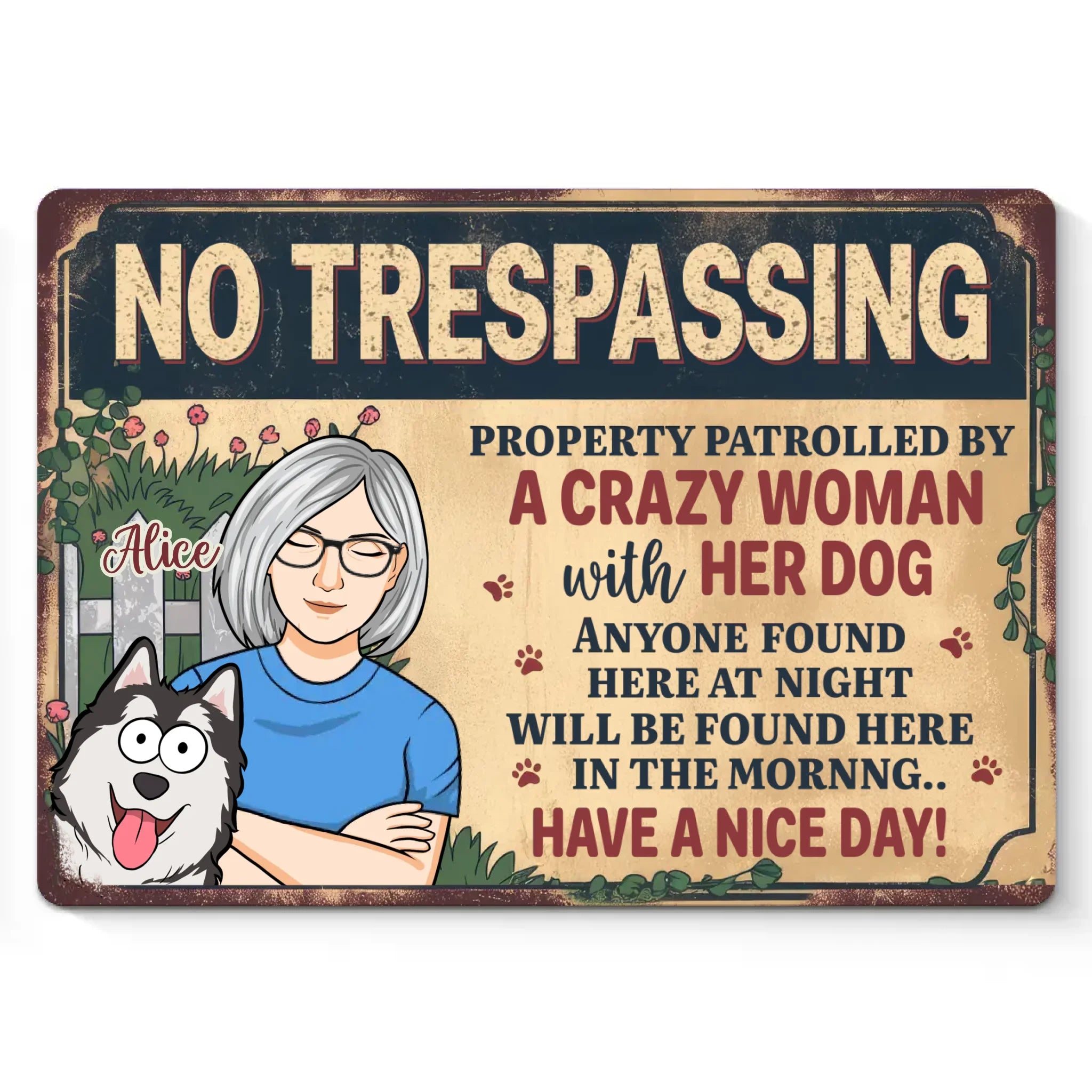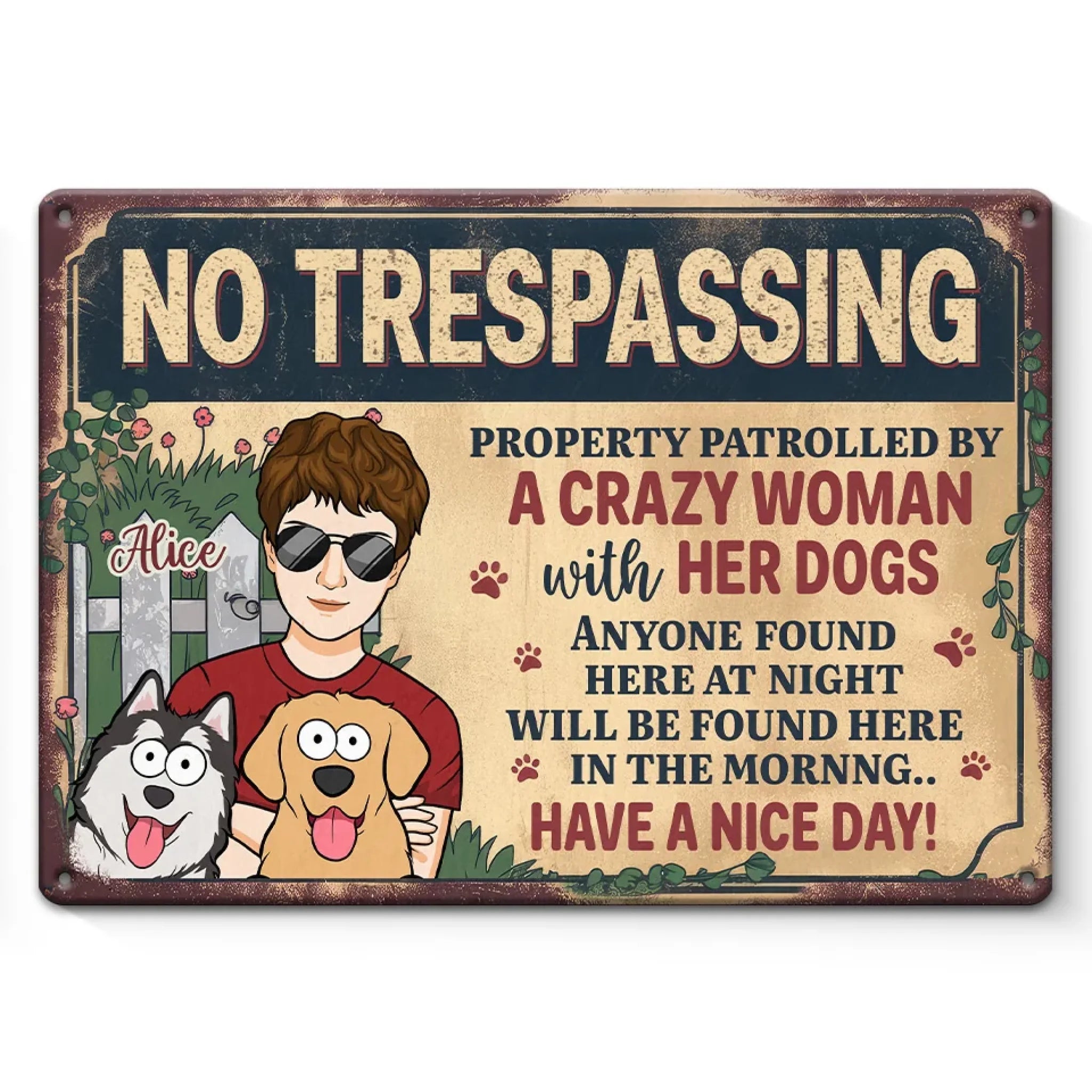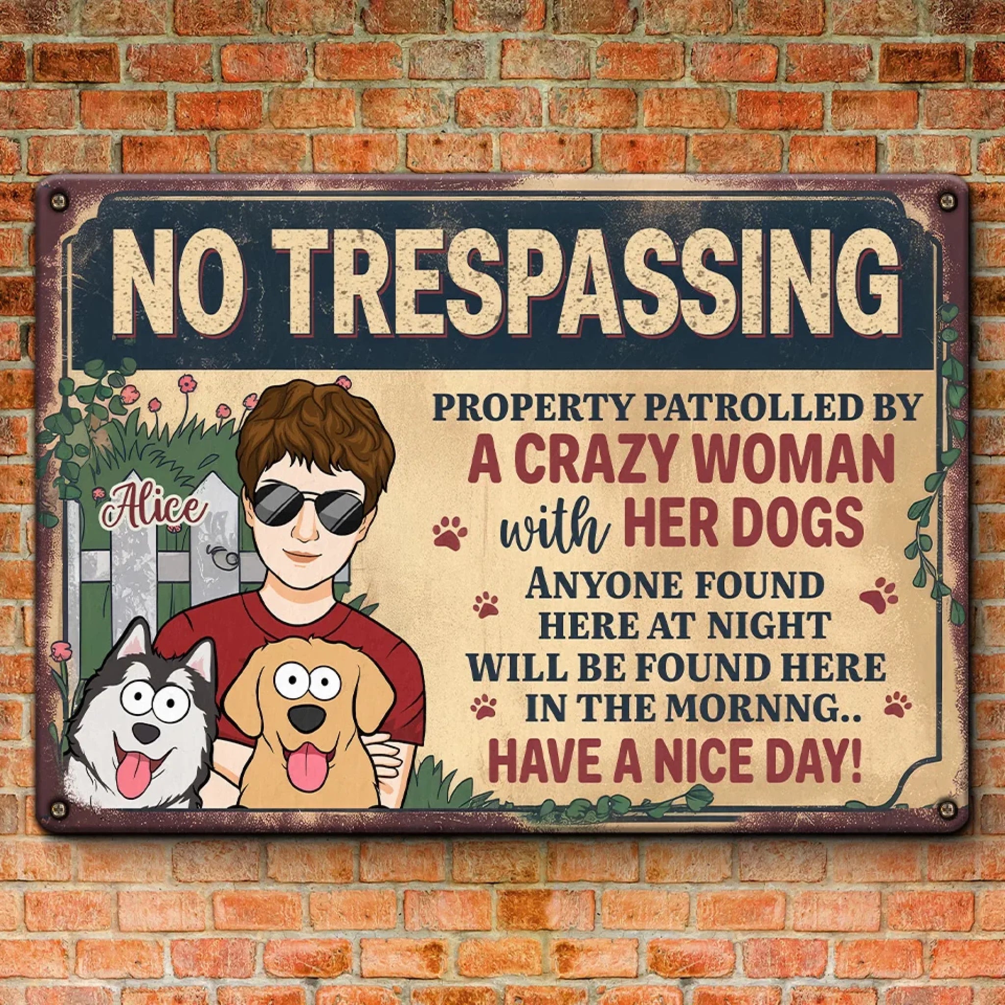 Patrolled By Dogs, Protected By Their Crazy Owner - Dog Personalized Custom Home Decor Metal Sign - House Warming Gift For Pet Owners, Pet Lovers