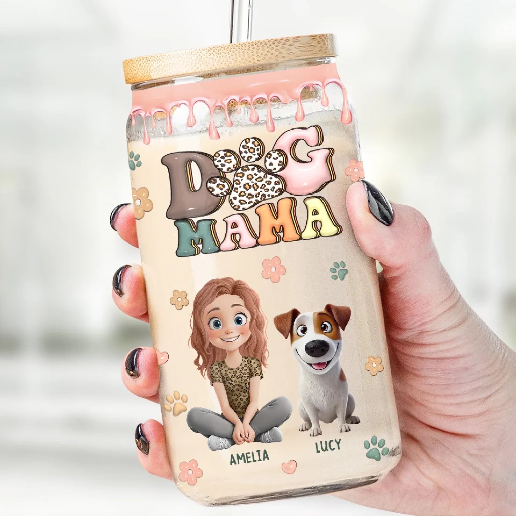 Proud Dog Mom For Life - Dog & Cat Personalized Custom Glass Cup, Iced Coffee Cup - Gift For Pet Owners, Pet Lovers