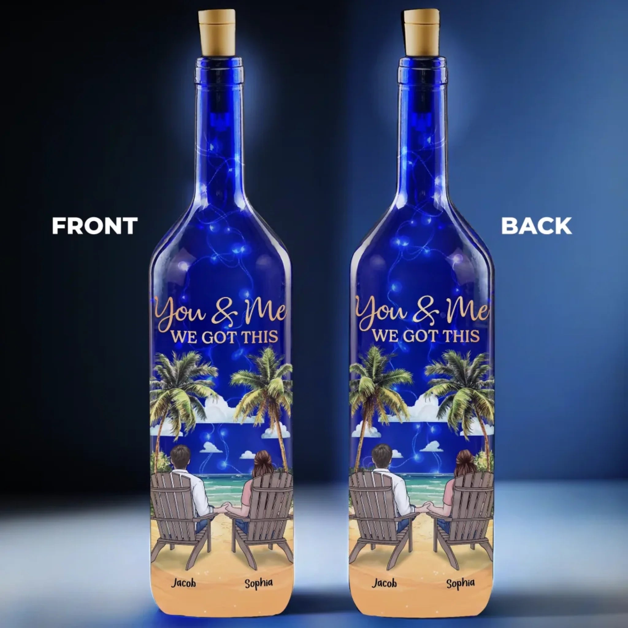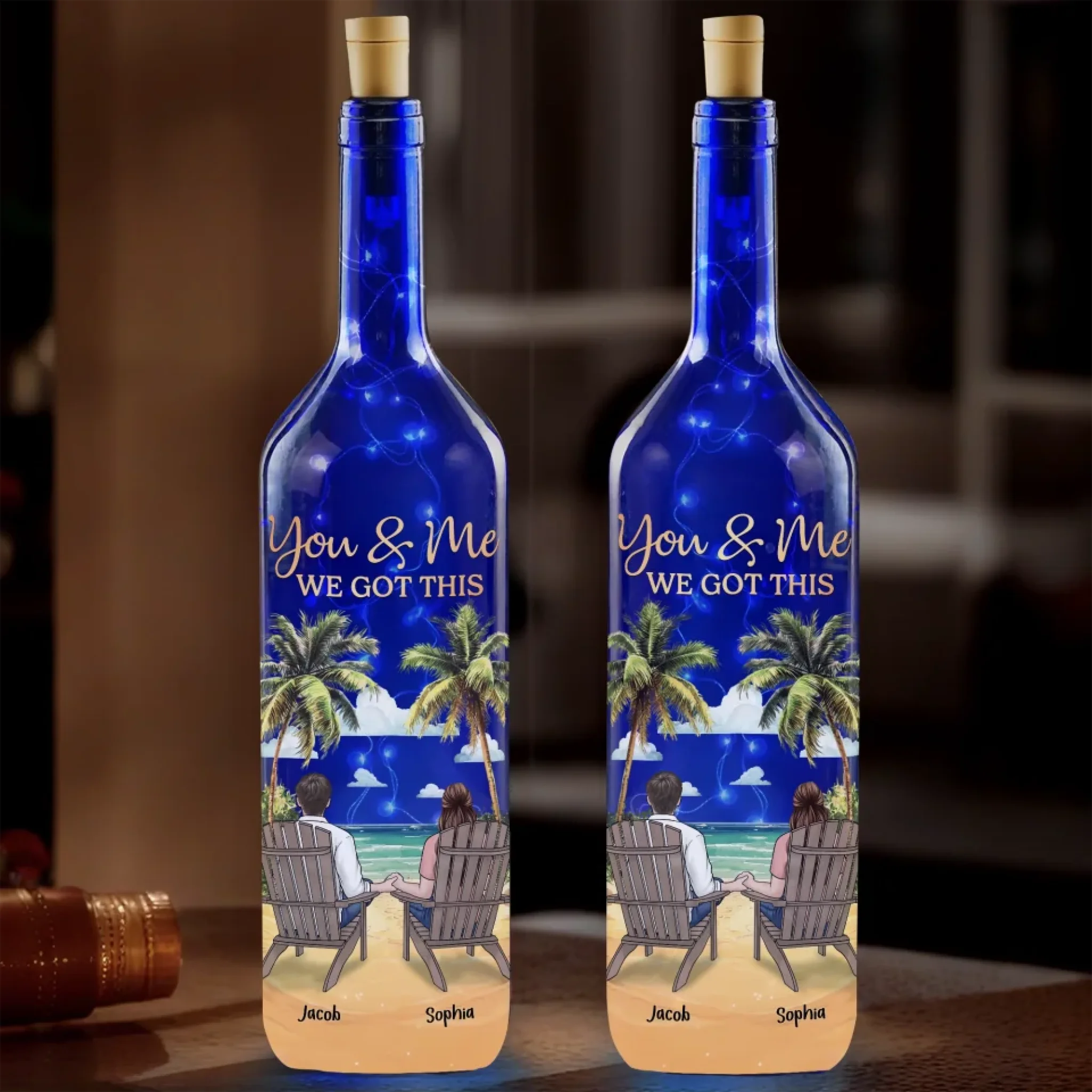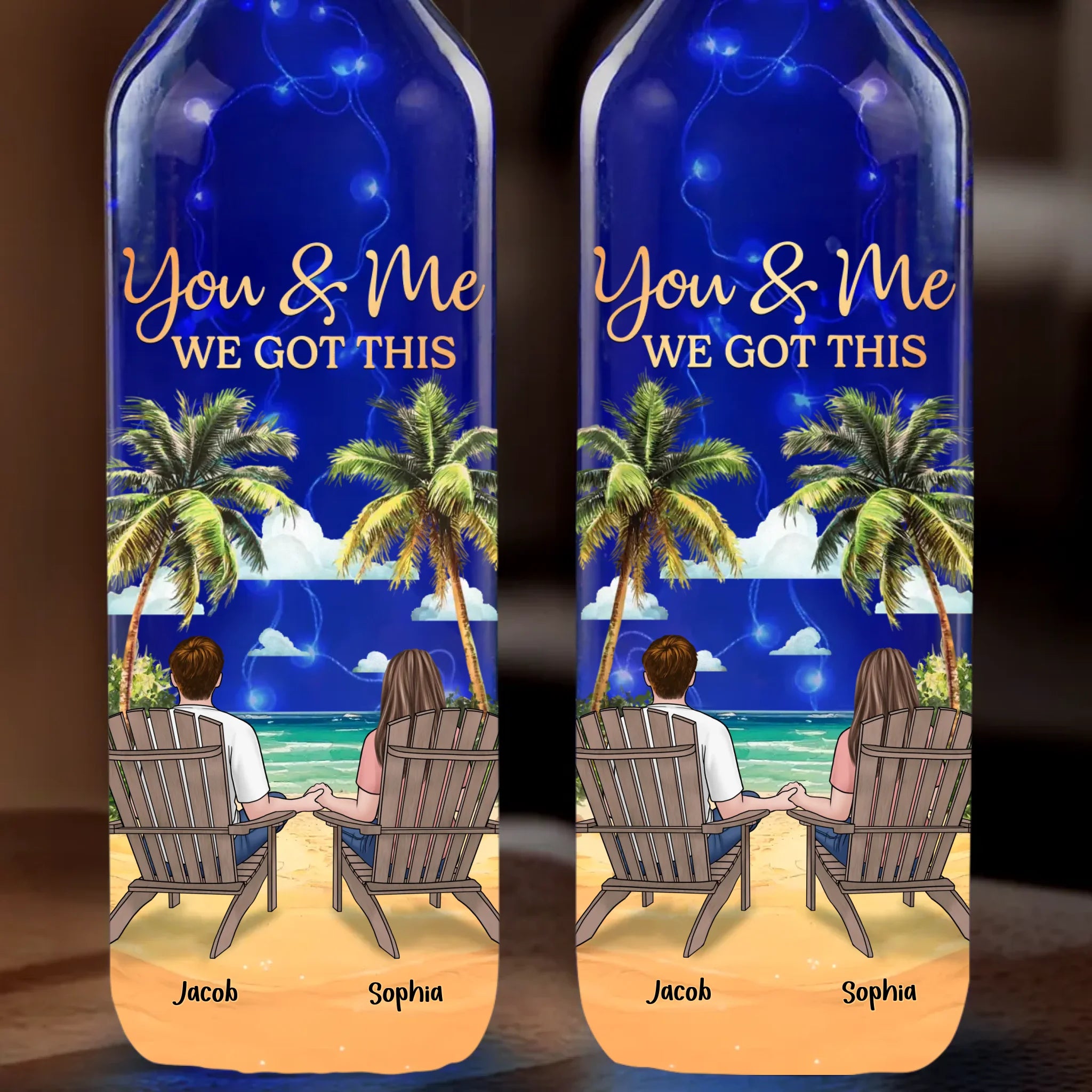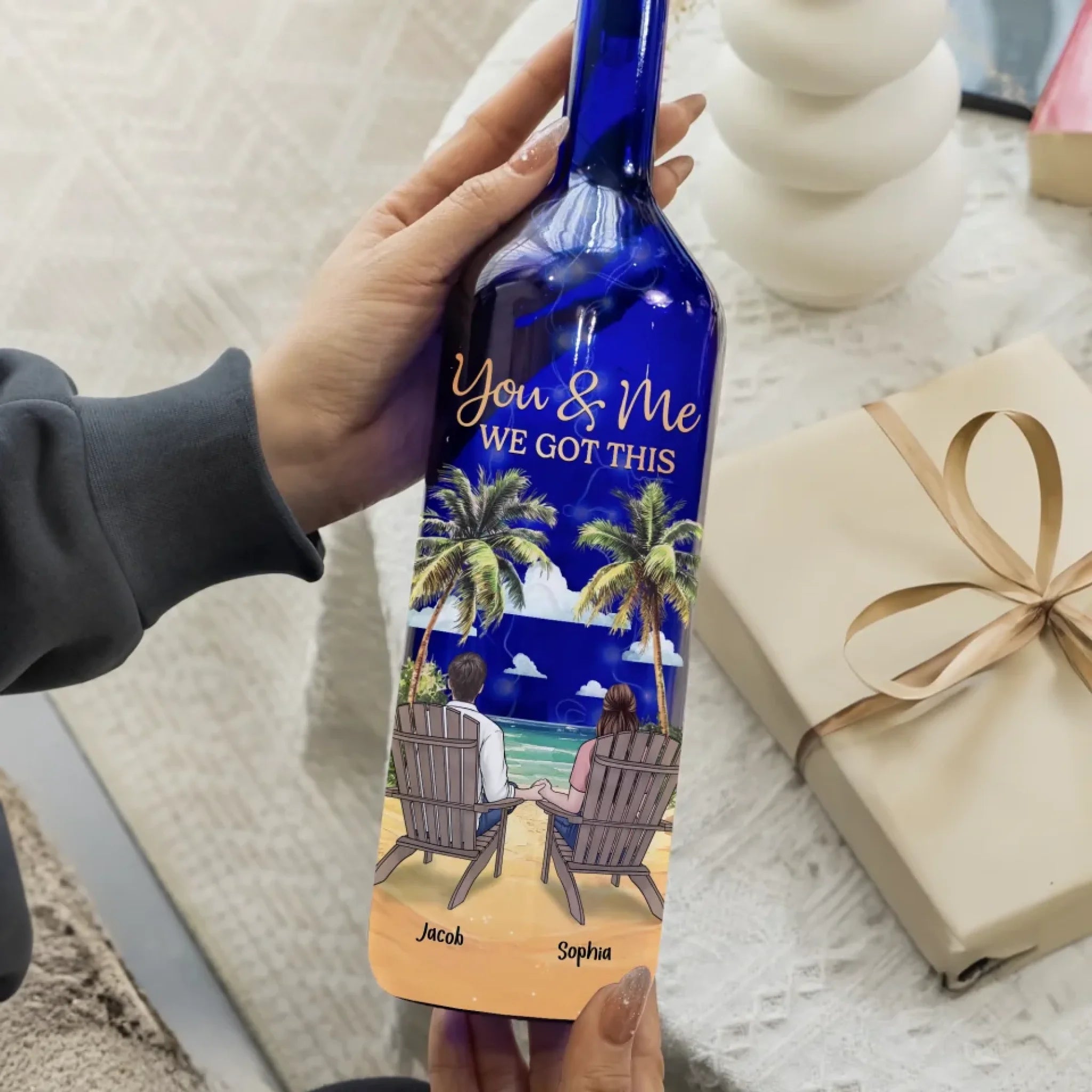Side By Side, Through Every Storm - Couple Personalized Custom Blue Bottle Lamp - Gift For Husband Wife, Anniversary