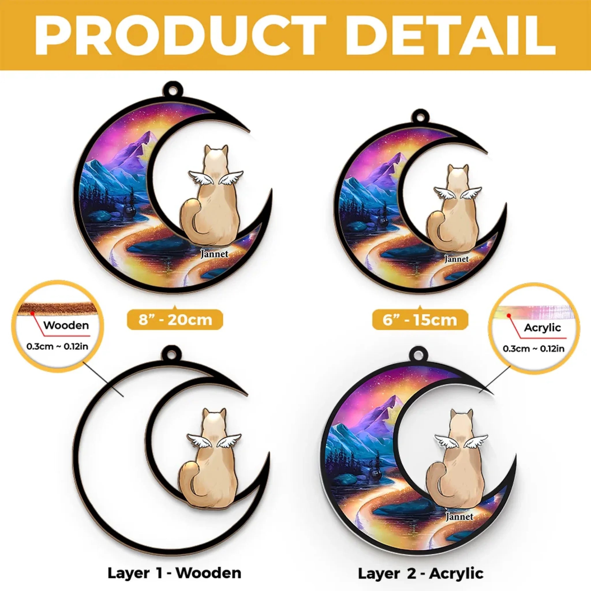 • Material: The front of this suncatcher is made from premium natural wood and mounted on acrylic plexiglass.