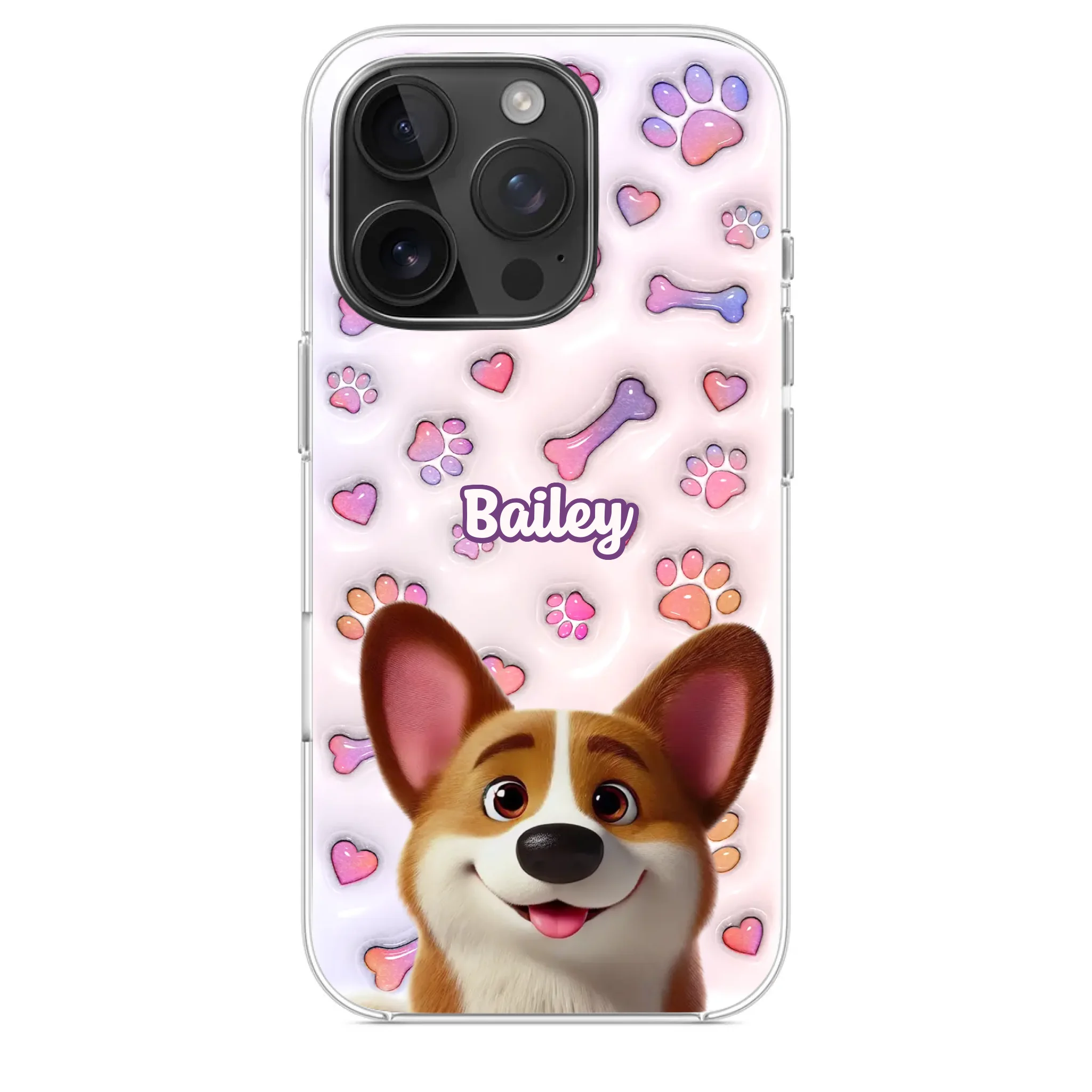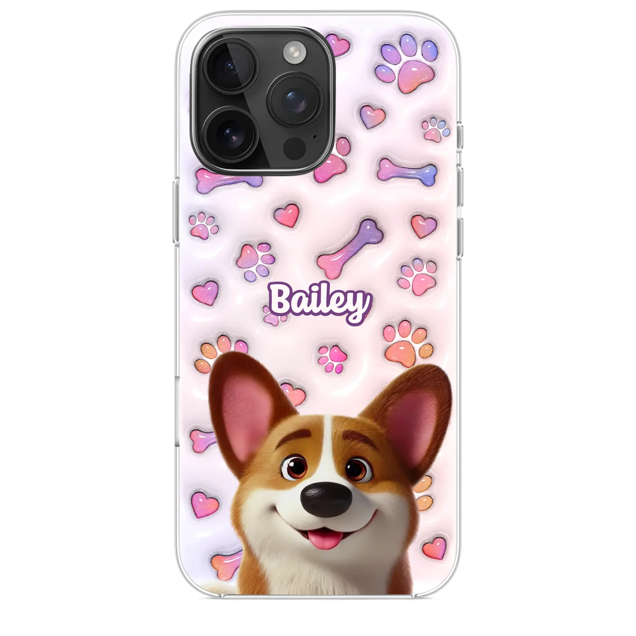 This is a clear phone case with a 3D inflated effect print, used to give the item a premium and deep look.