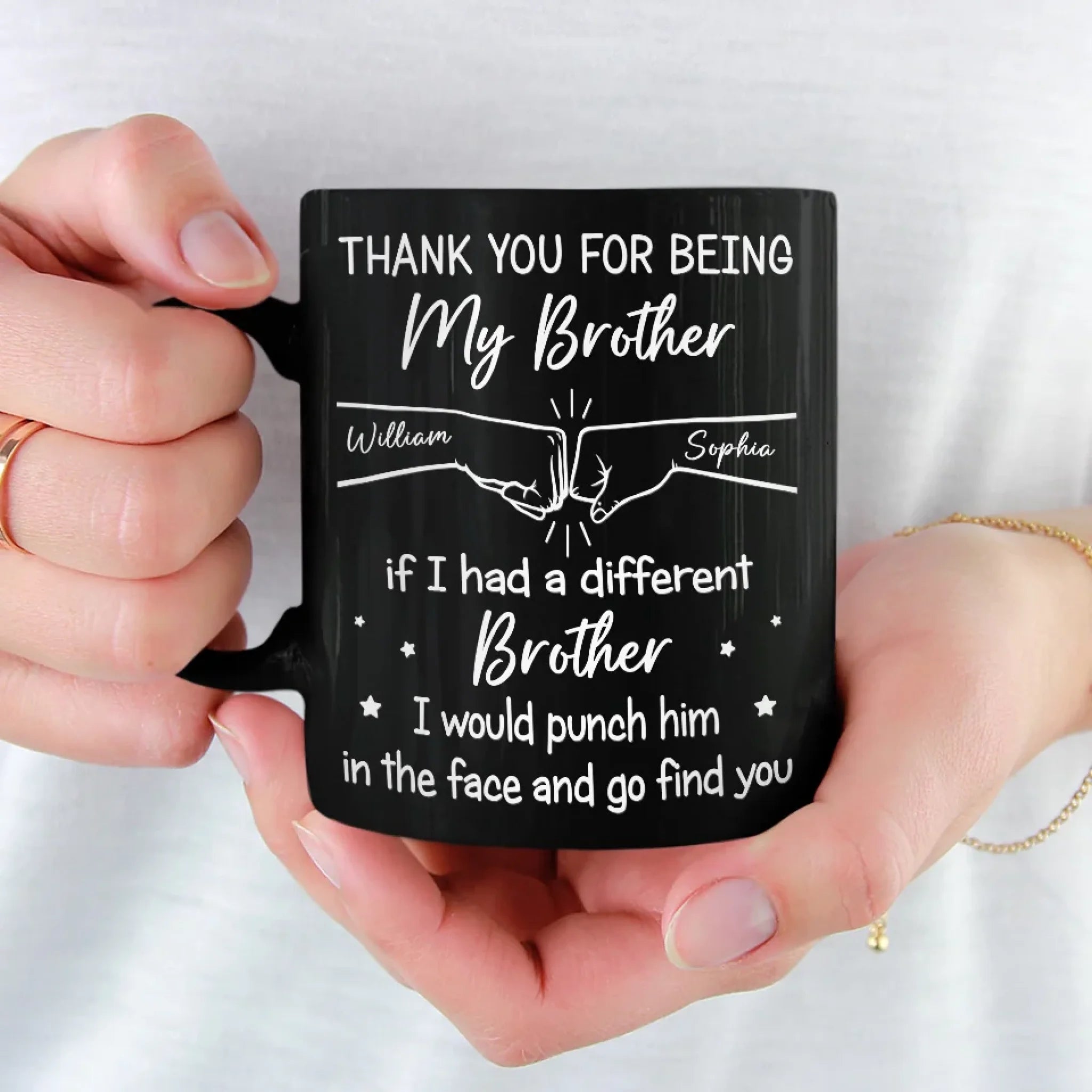 Thank You For Being My Friend - Family Personalized Custom Black Mug - Gift For Family Members, Siblings, Brothers, Cousins, Best Friends