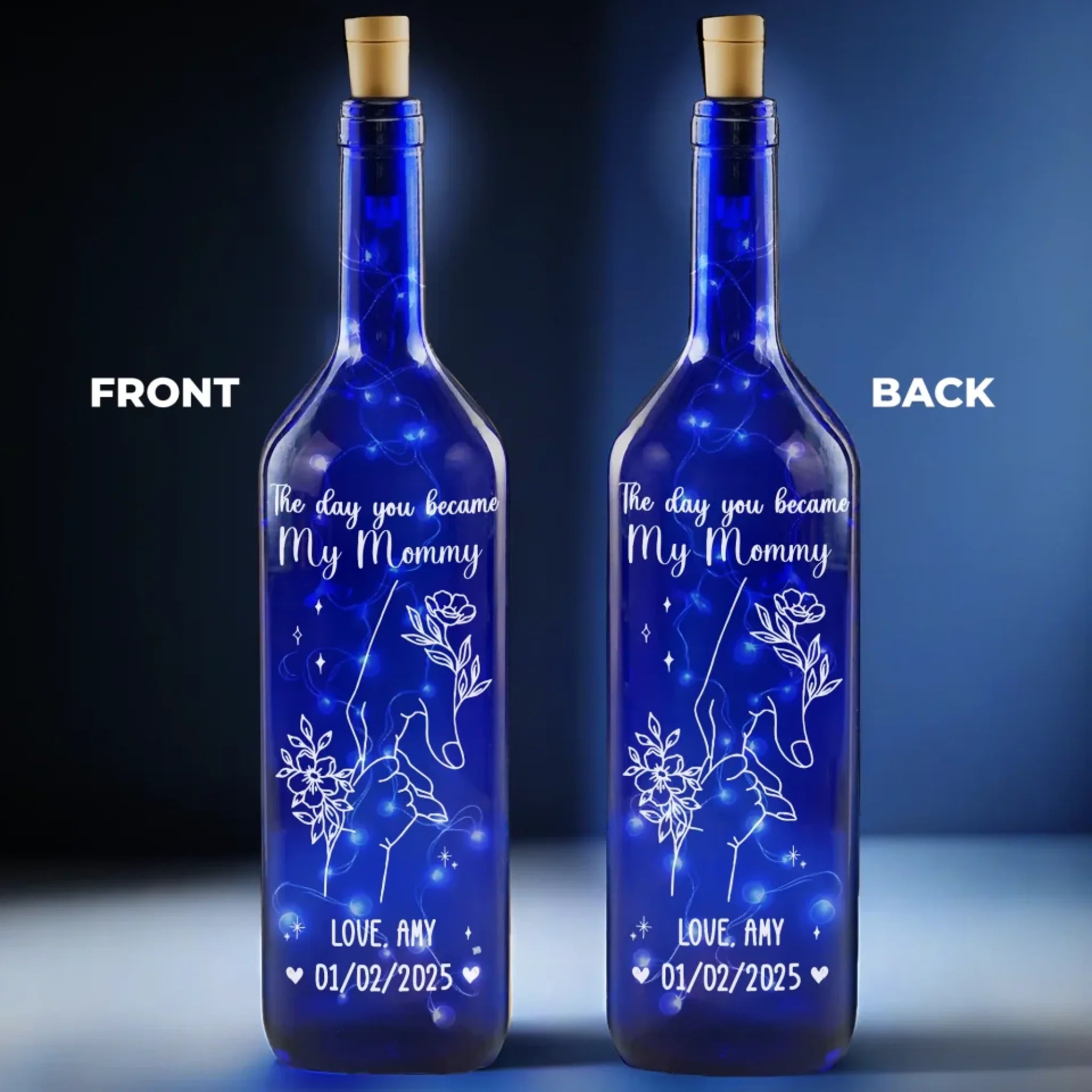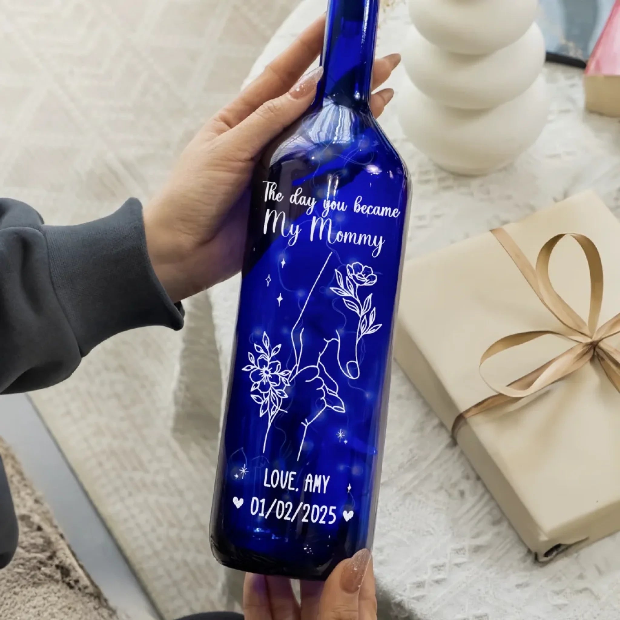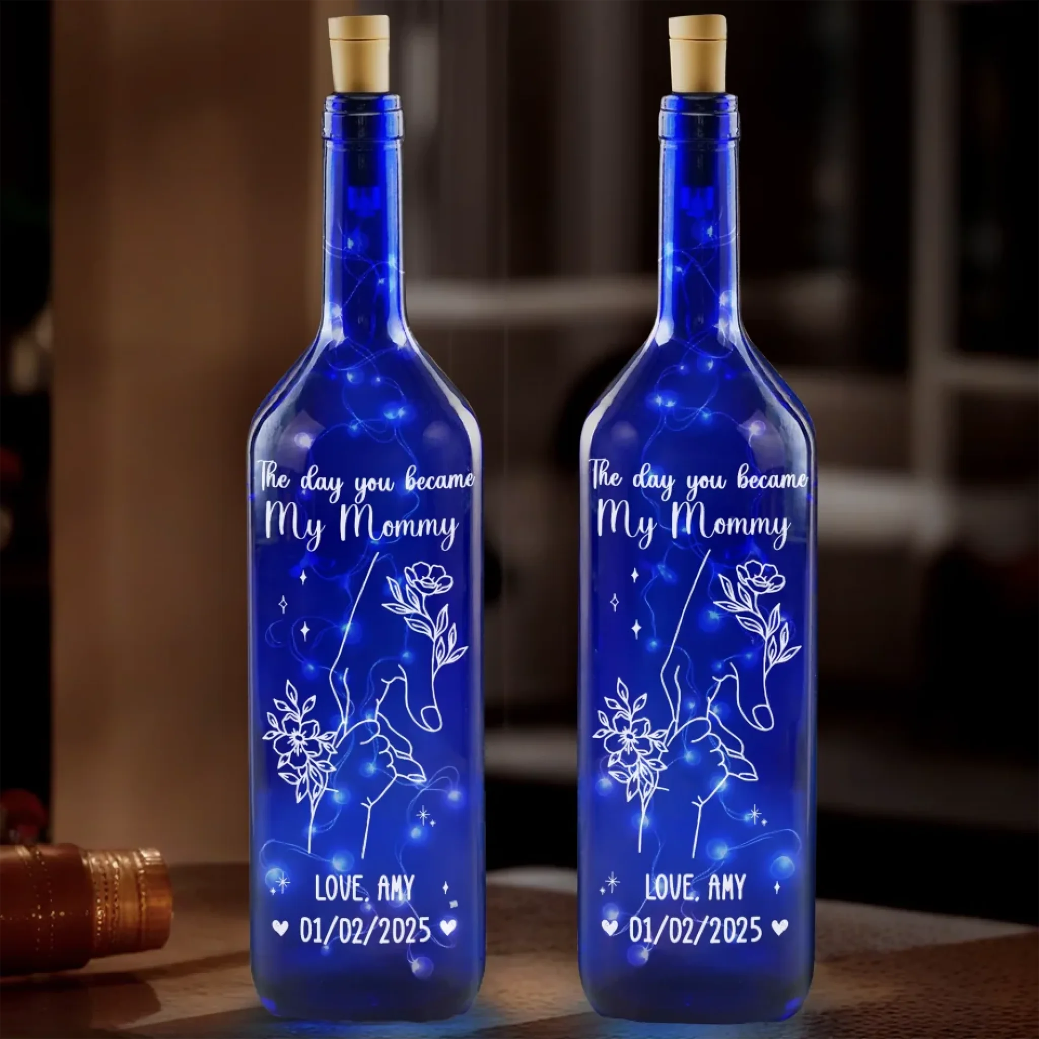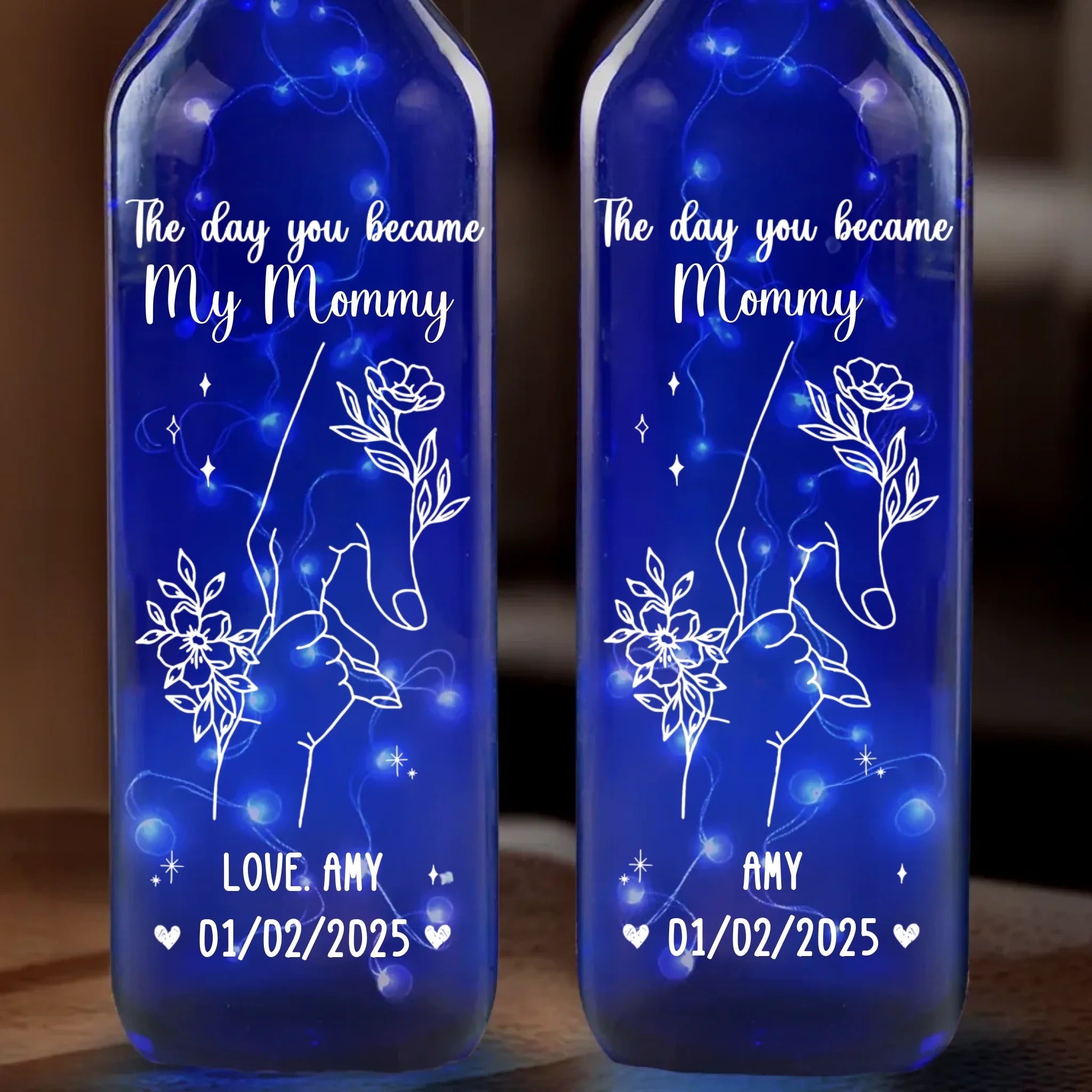 The Day You Became My Mommy - Family Personalized Custom Blue Bottle Lamp - Mother's Day, Baby Shower Gift, Gift For First Mom