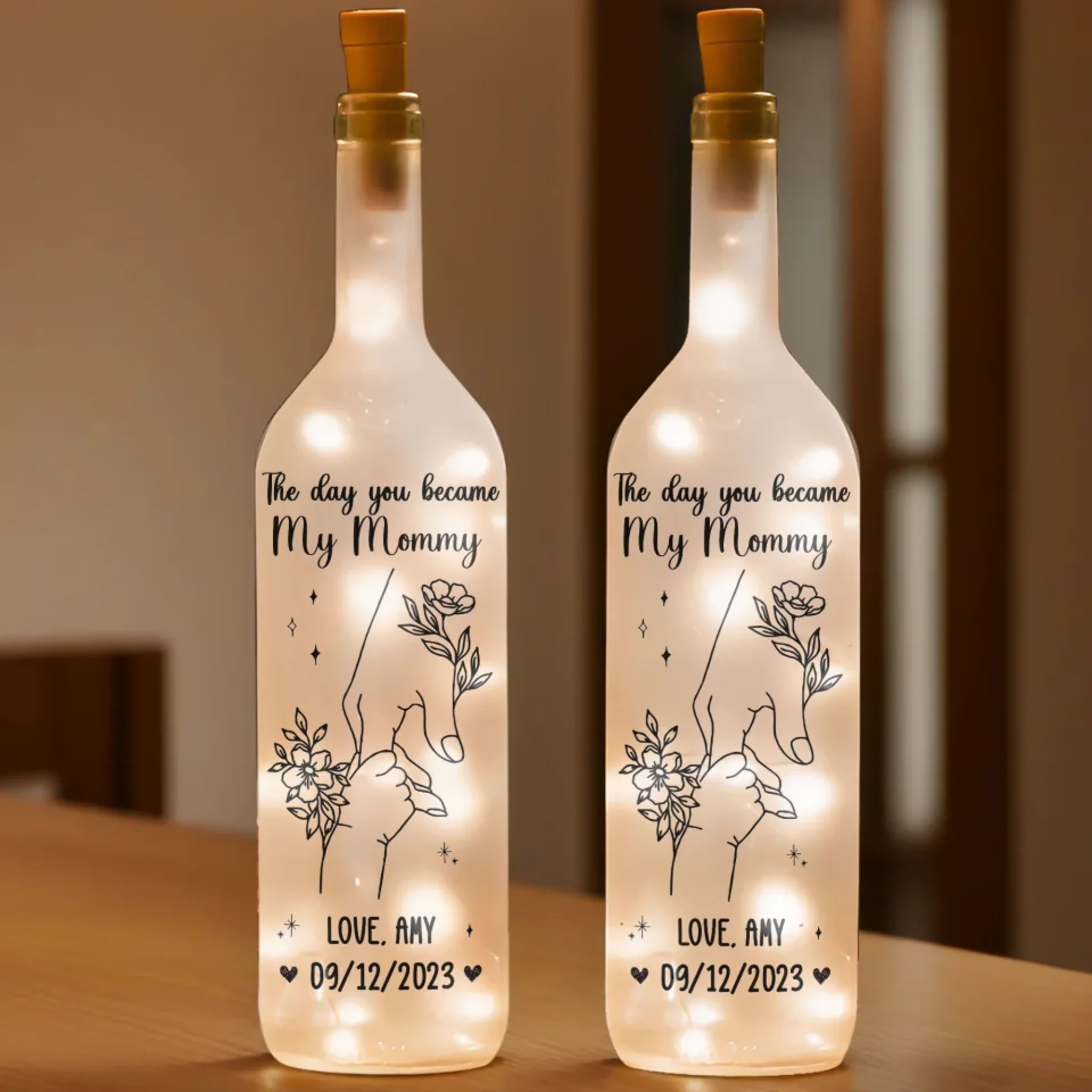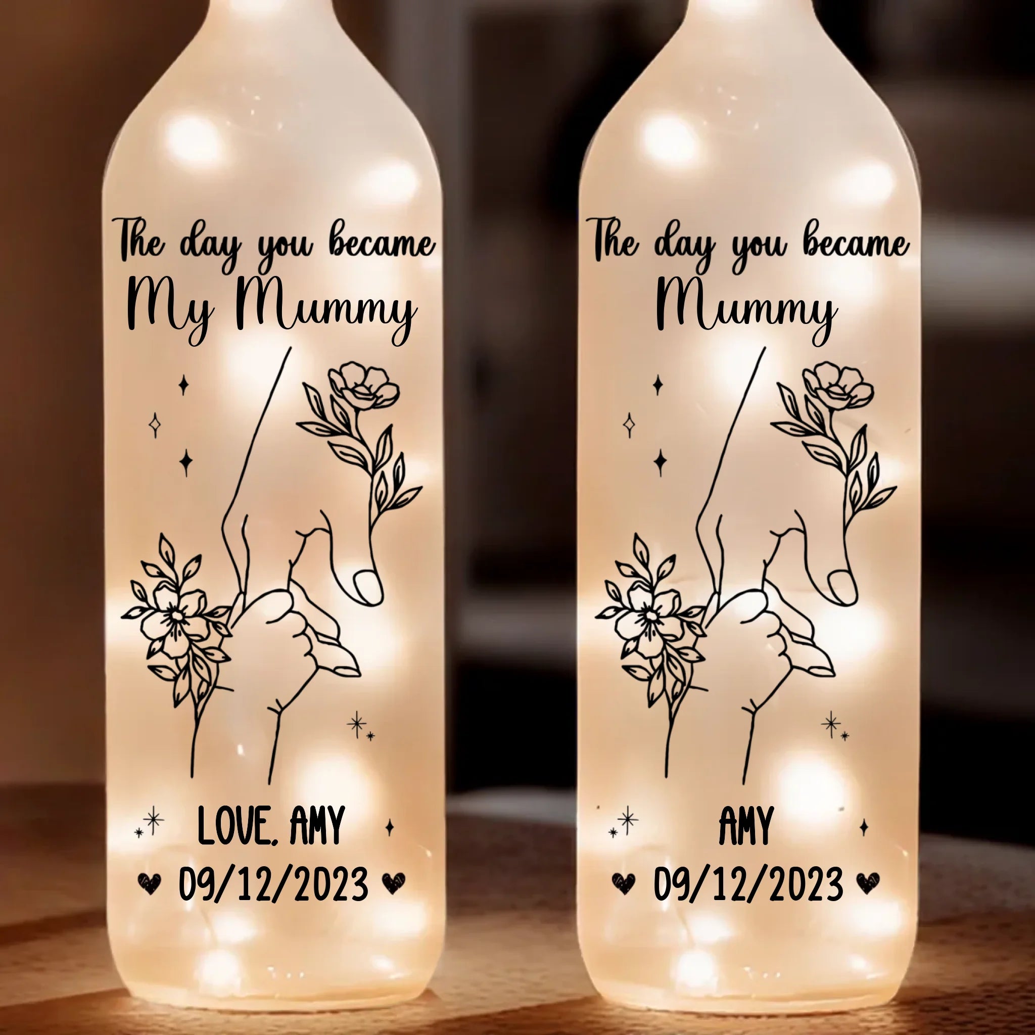 The Day You Become My Mummy - Family Personalized Custom Bottle Lamp - Baby Shower Gift, Gift For First Mom