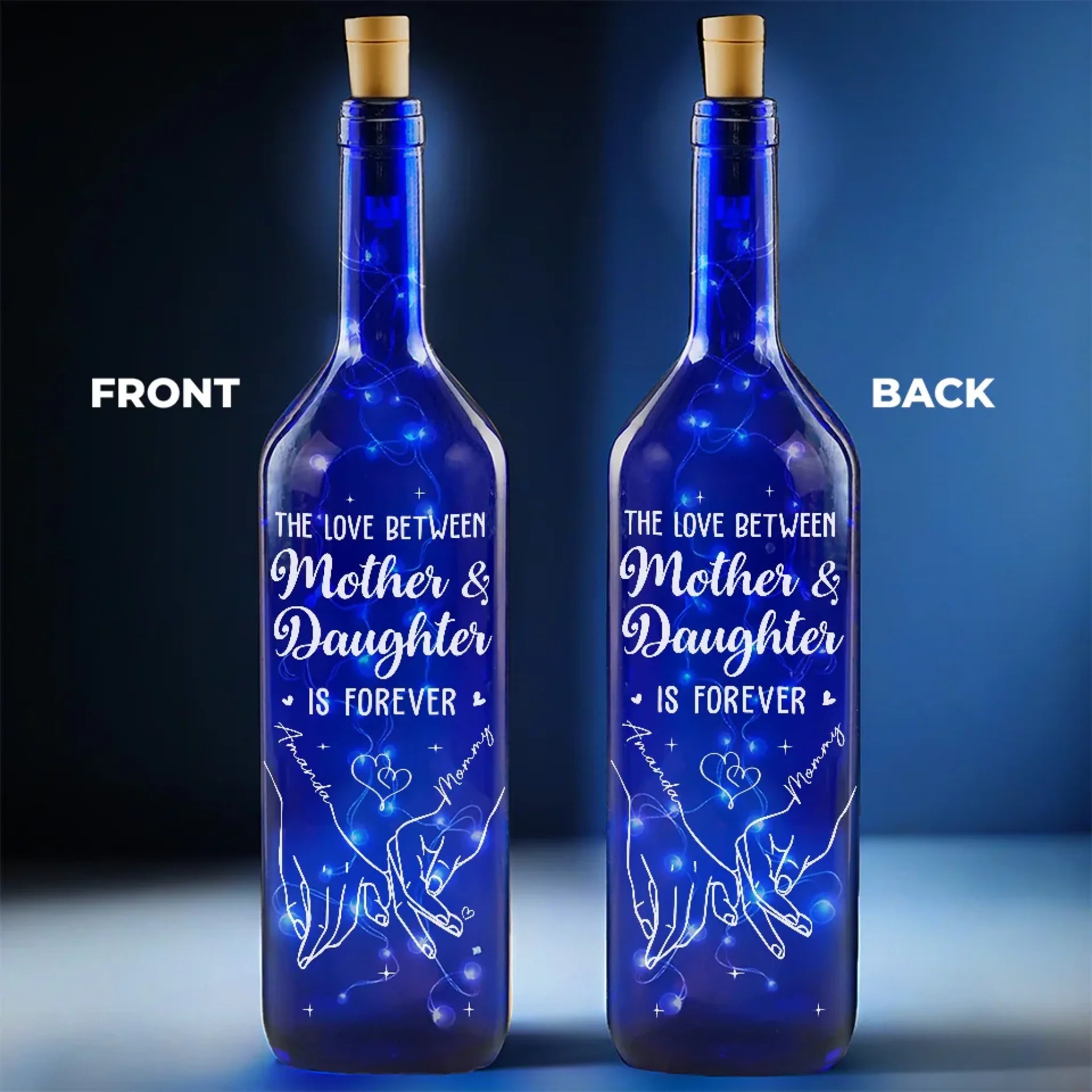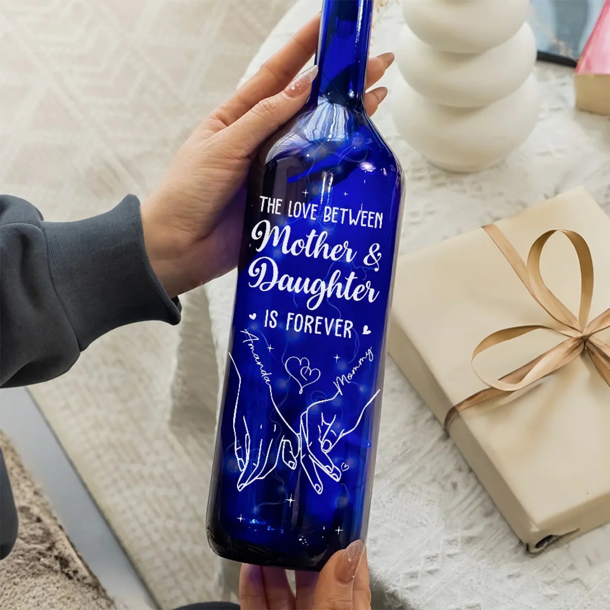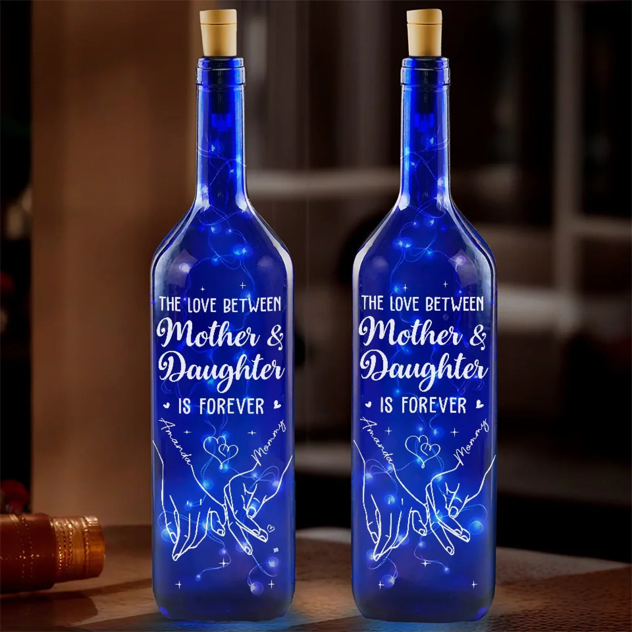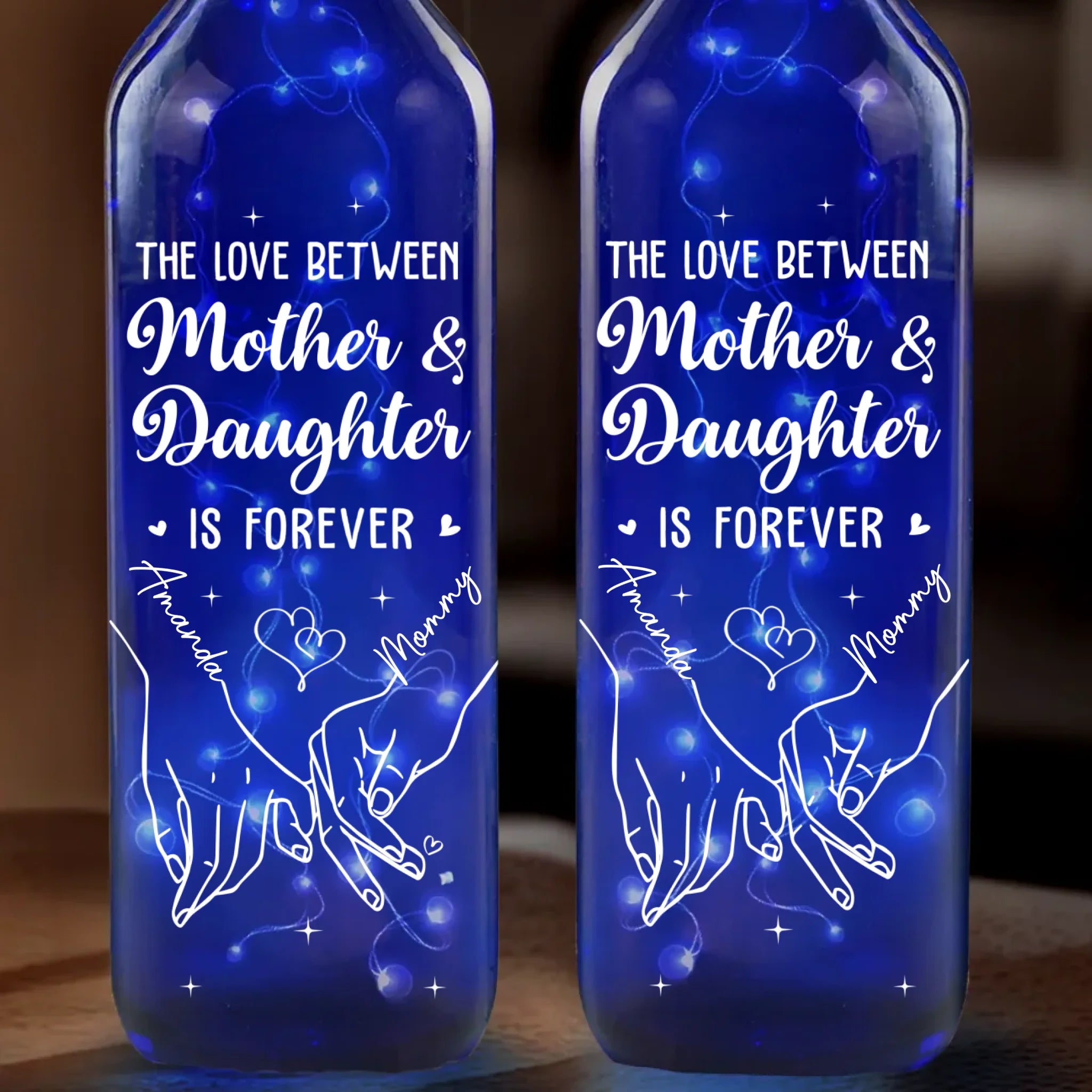 The Love Between Mother & Daughter Is Forever - Family Personalized Custom Blue Bottle Lamp - Mother's Day, Gift For Mom, Daughter