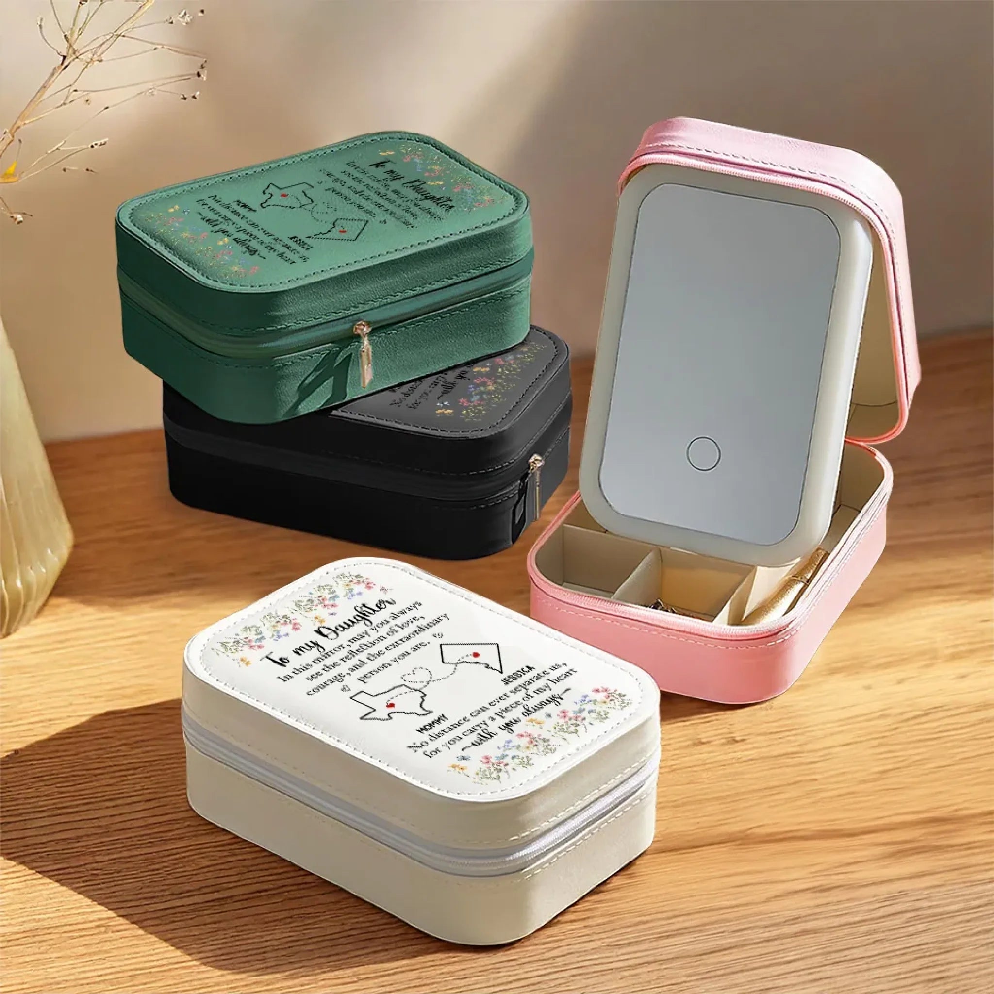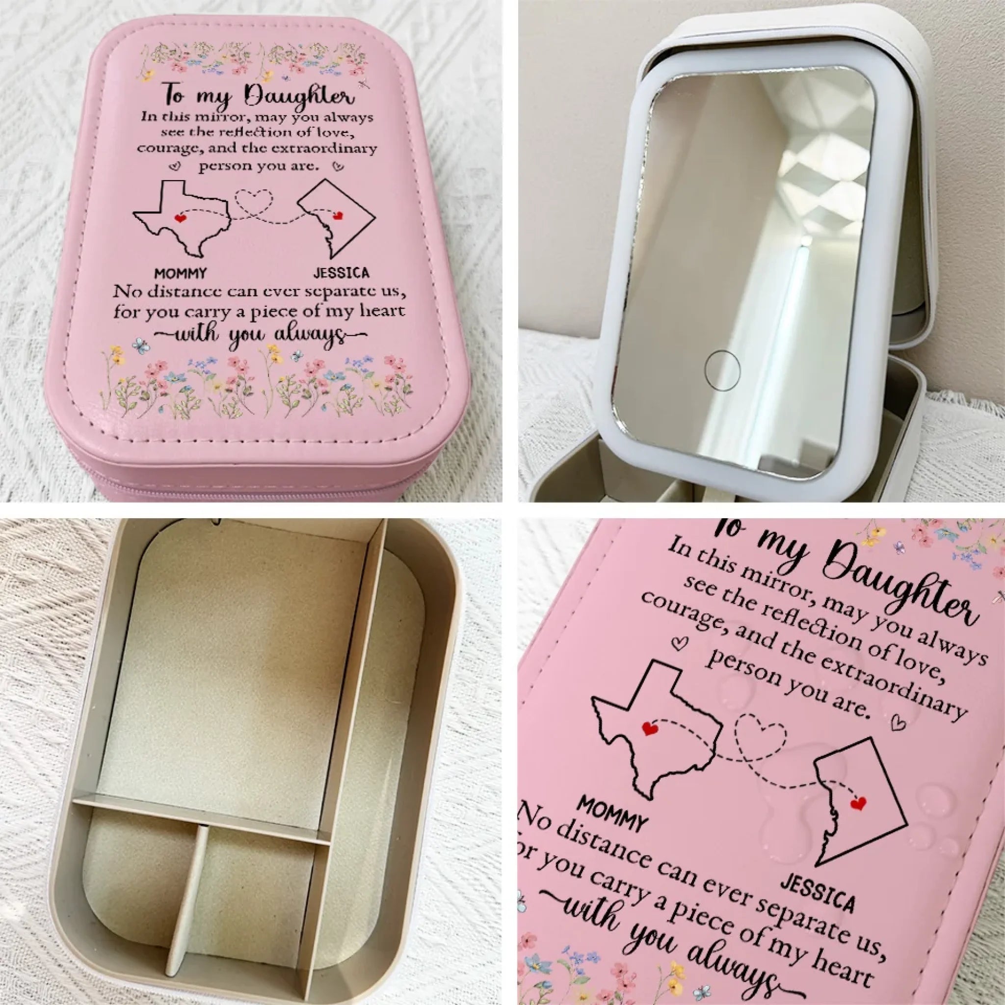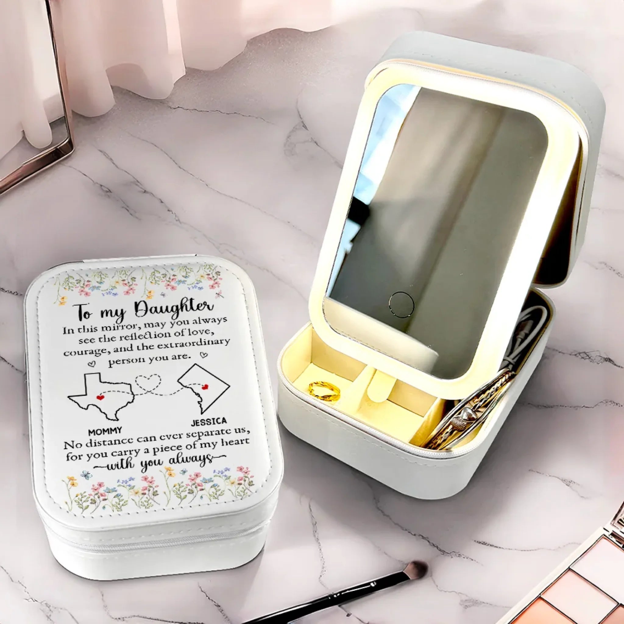 The Reflection Of Love - Family Personalized Custom Jewelry Box LED Makeup - Gift For Mom, Daughter