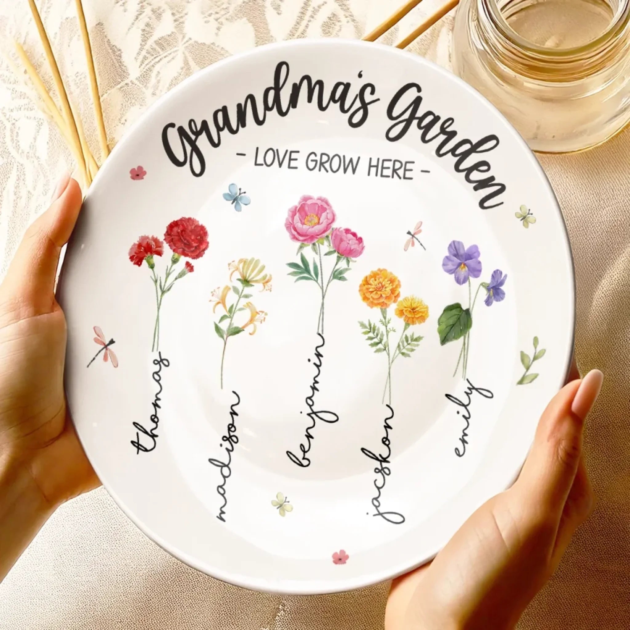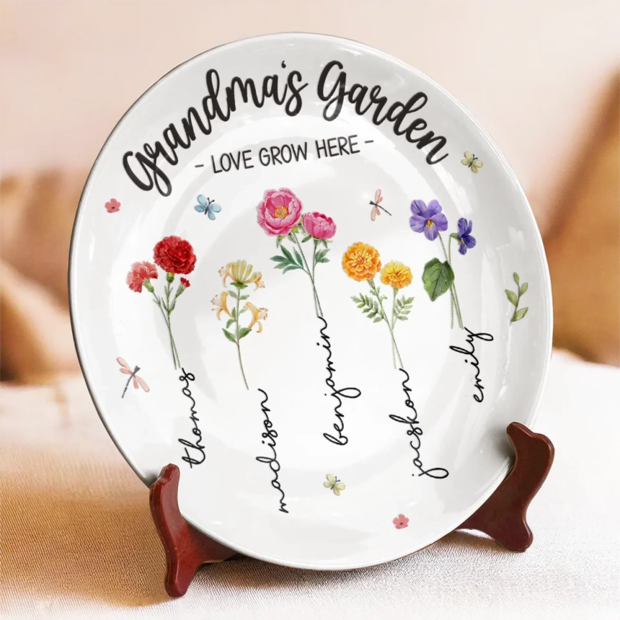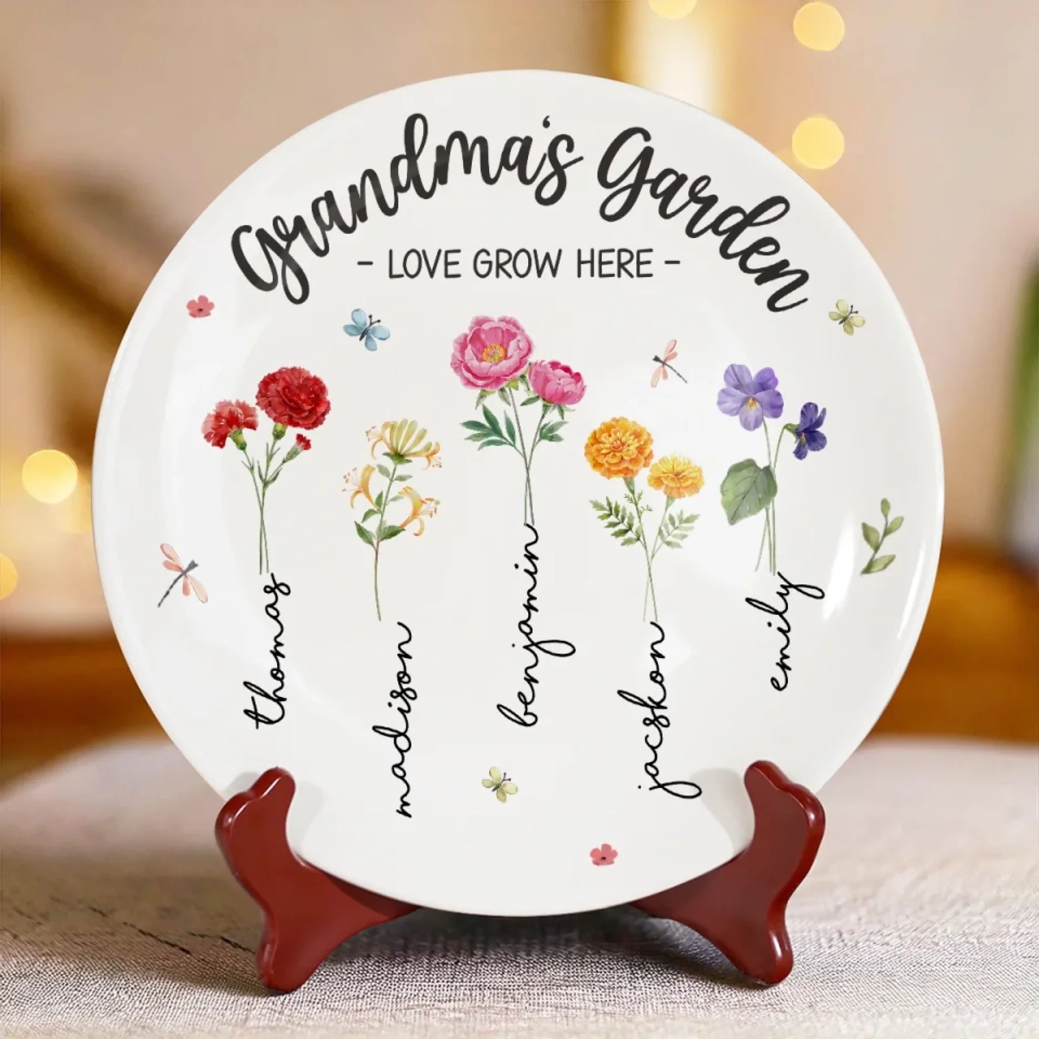 There’s No Place Like Grandma’s Love - Family Personalized Custom Ceramic Plate - Mother's Day, Gift For Mom, Grandma