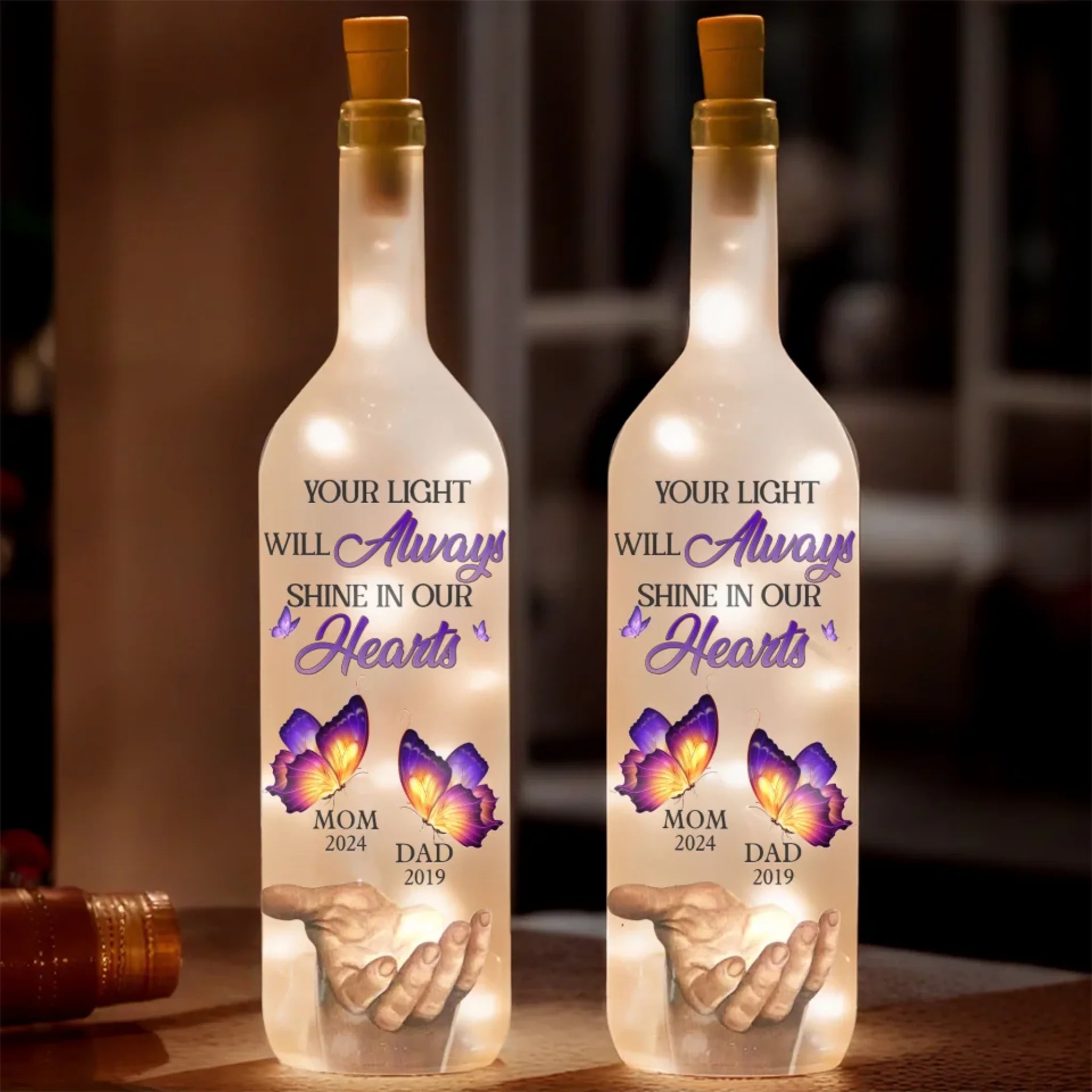 Together, Always By Your Side - Memorial Personalized Custom Bottle Lamp - Sympathy Gift For Family Members