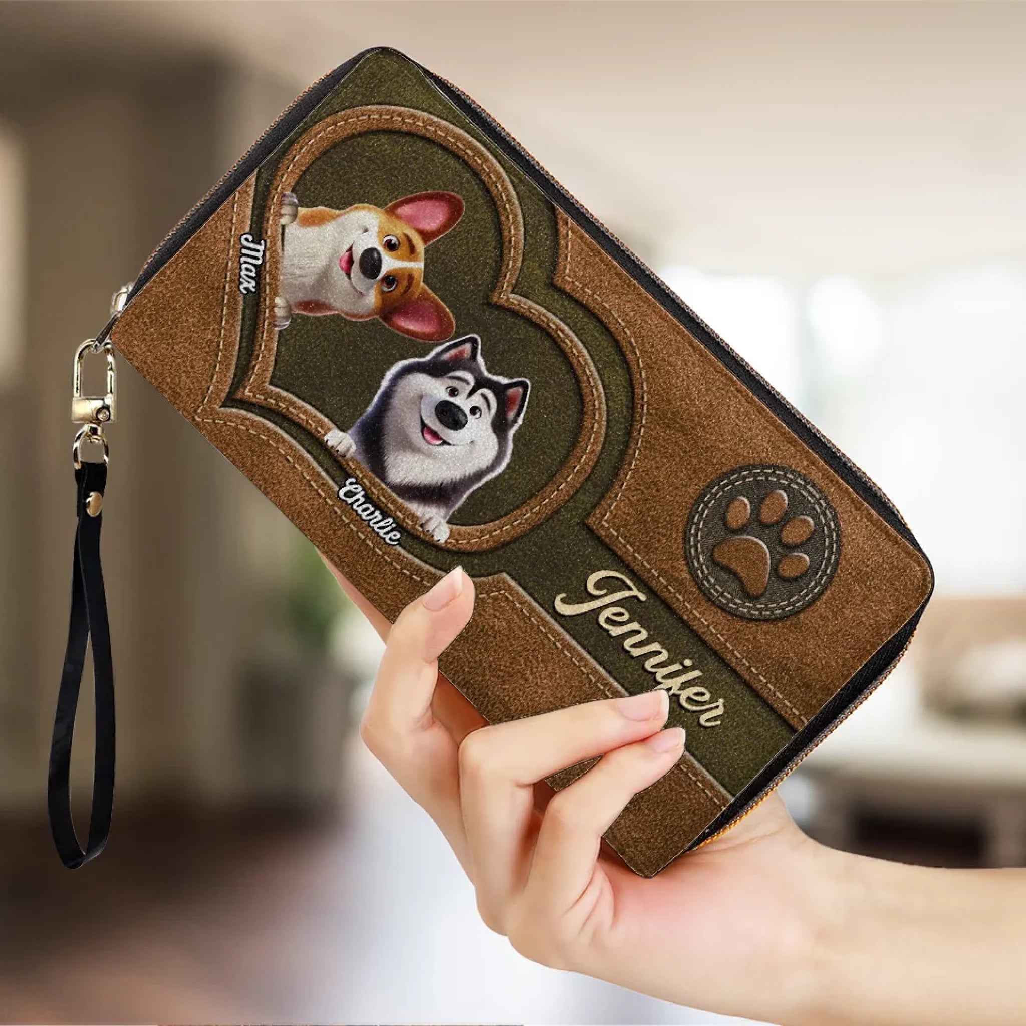 Unconditional Love With Paws - Dog & Cat Personalized Custom Leather Long Wallet - Gift For Pet Owners, Pet Lovers