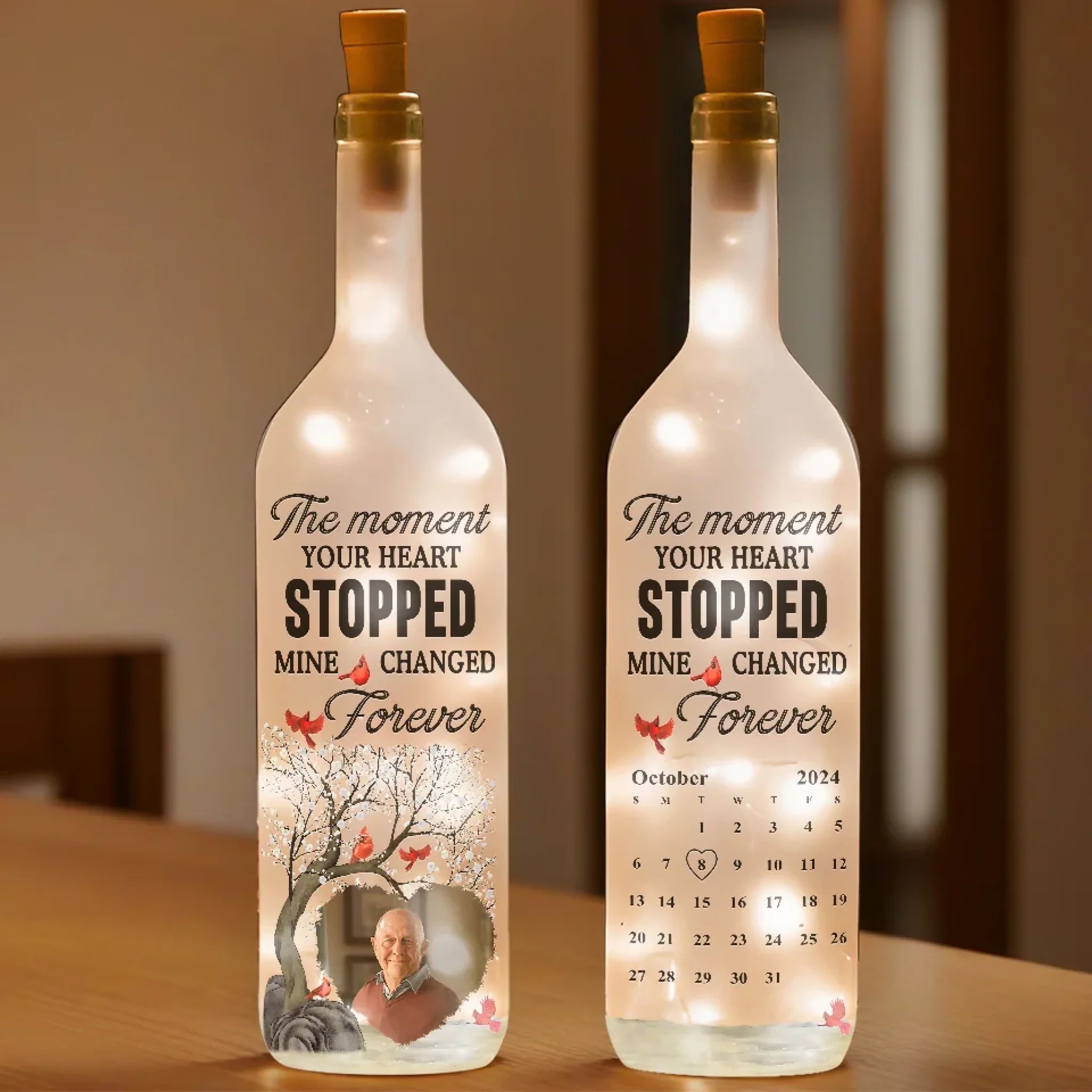 Custom Photo Though You’re Gone, Your Love Remains - Memorial Personalized Custom Bottle Lamp - Sympathy Gift For Family Members