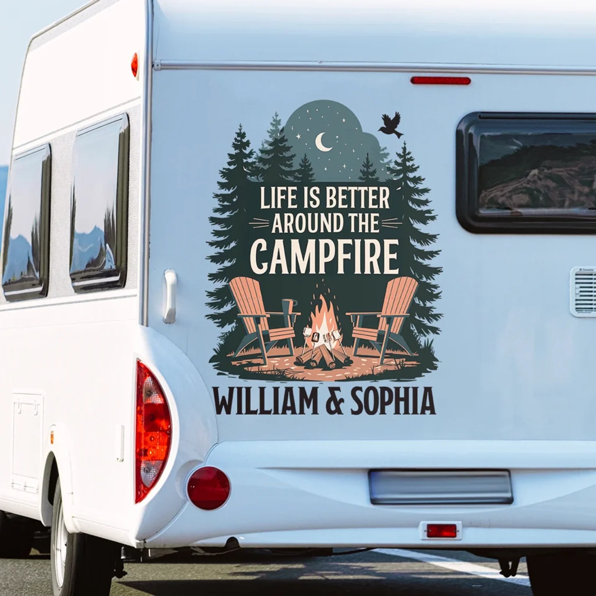 This personalized RV Decal is an amazing choice to enhance the adventurous spirit in your journeys. It is designed to spread the love for exploration, camping, and the great outdoors. Whether you're a seasoned traveler, a camping enthusiast, or simply appreciate the beauty of nature, this item is the matching piece that adds a personal touch to your vehicle and make it stand out on the road.